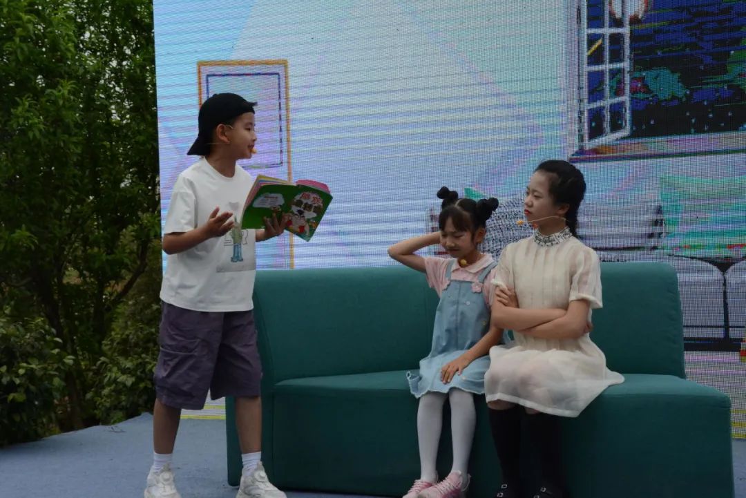 当天,杨红樱儿童文学发展中心、龙泉驿区教育局共同开展杨红樱课间剧(校园剧)展演活动,由青台山小学学生代表精彩演绎《马小跳》课间剧,随后杨红樱上台与读者作创作分享。