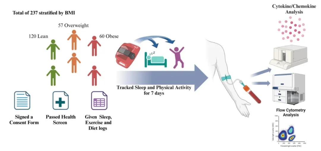 (研究截图)研究还发现,肥胖人群的睡眠质量明显较低,炎症水平显著升高;同时对年轻健康的成年人进行通宵实验,发现正常人的免疫细胞特征也会改变,如果这种变化持续存在,会导致慢性炎症并增大患病风险。