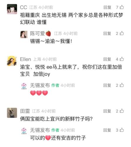 来源:无锡发布、无锡动物园、@小甜锡、无锡日报、无锡观察、无锡博报、@musella原标题:《渝宝加悦悦!亮相啦》