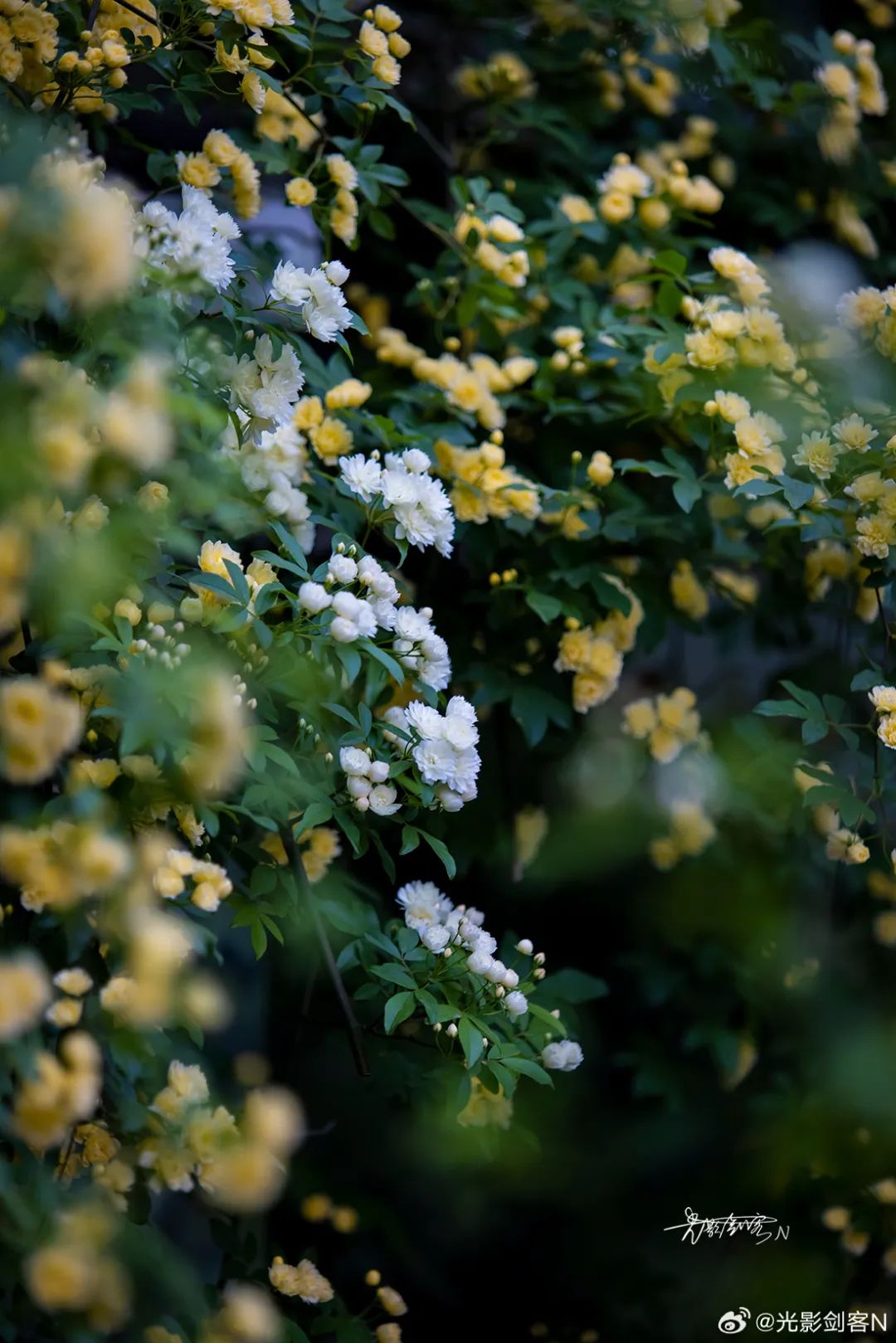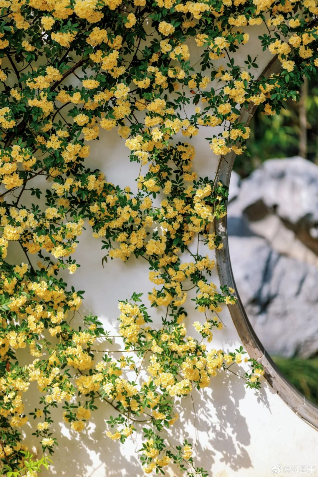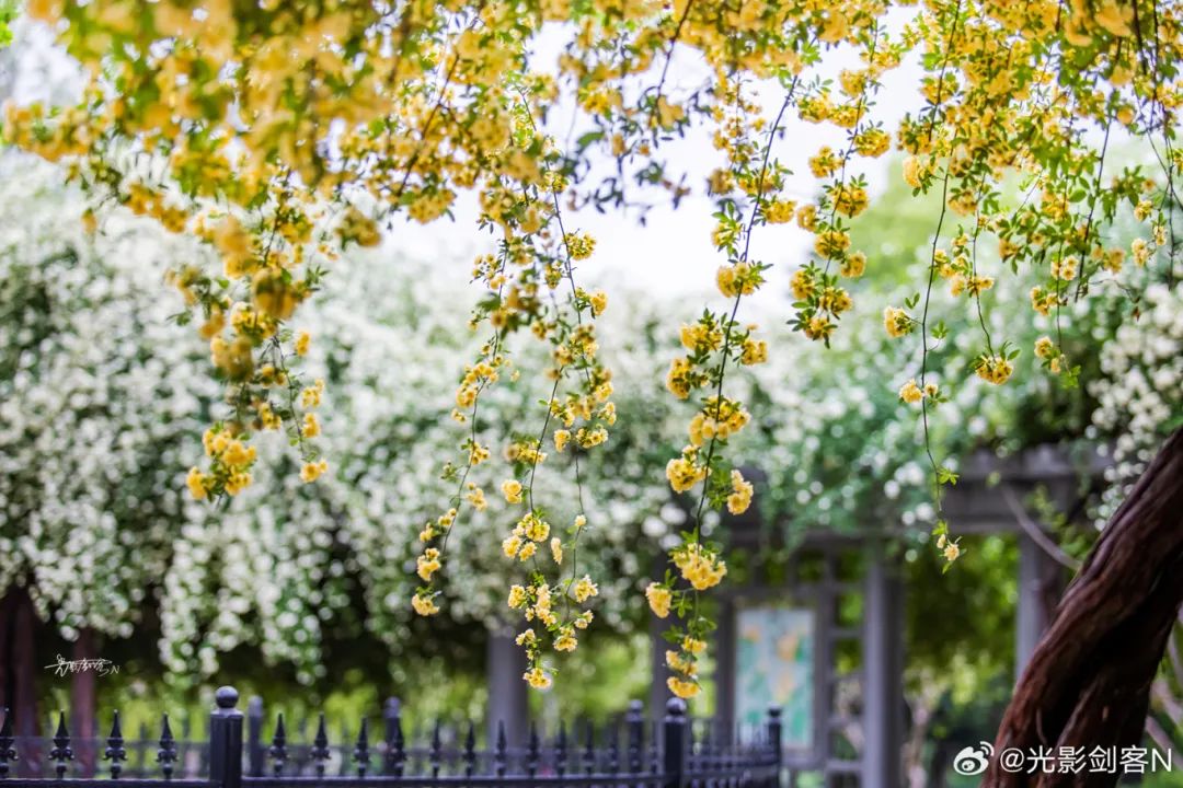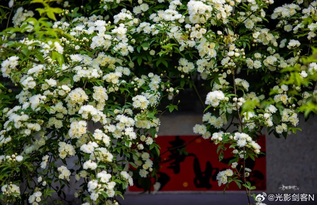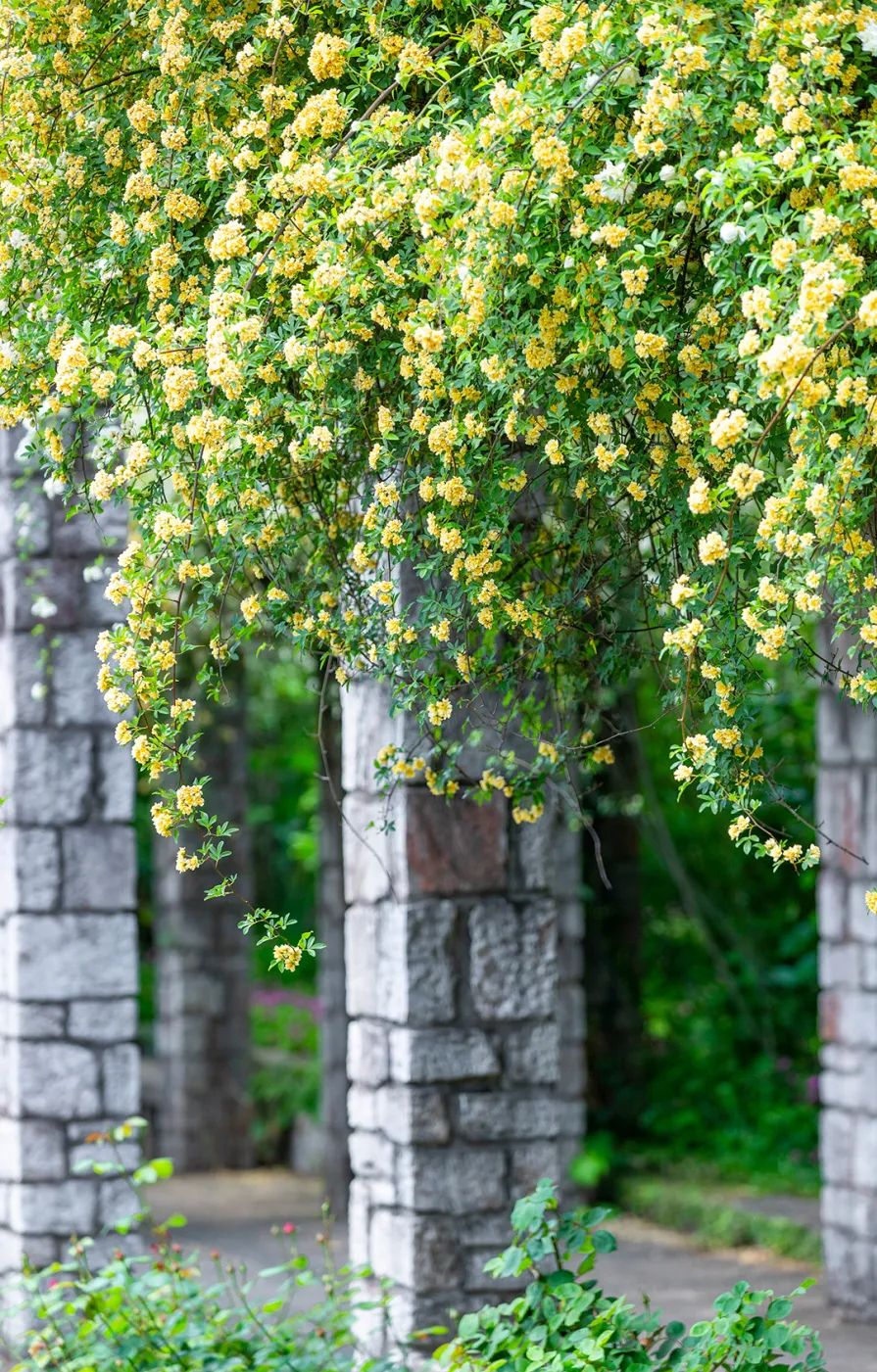 木香花瀑从墙头倾泻而下