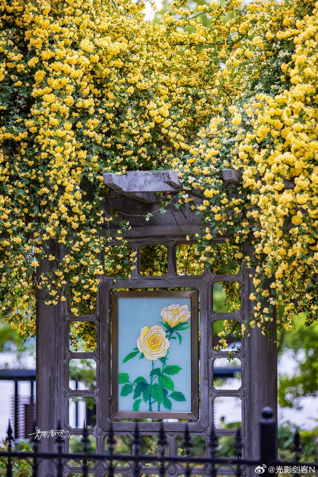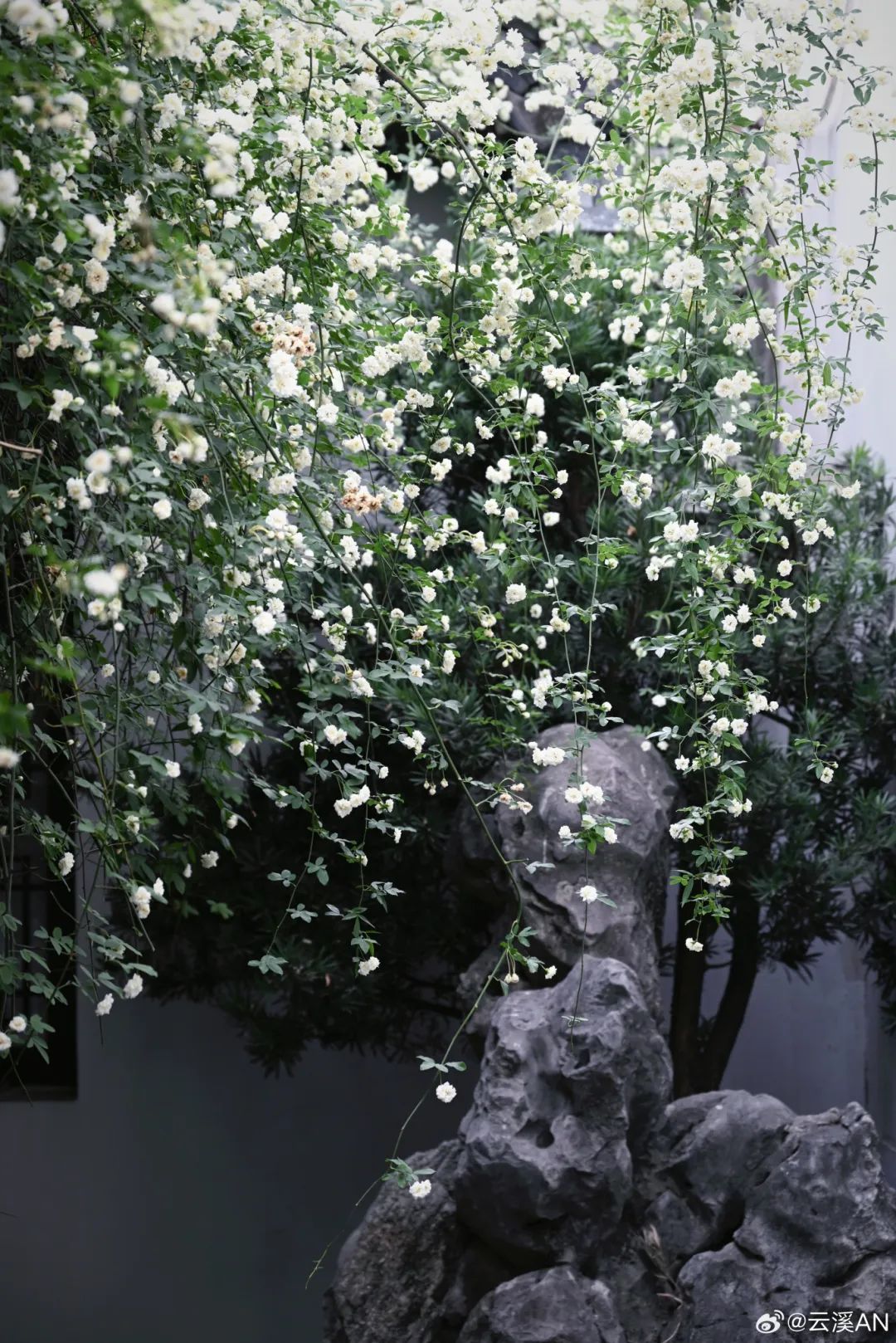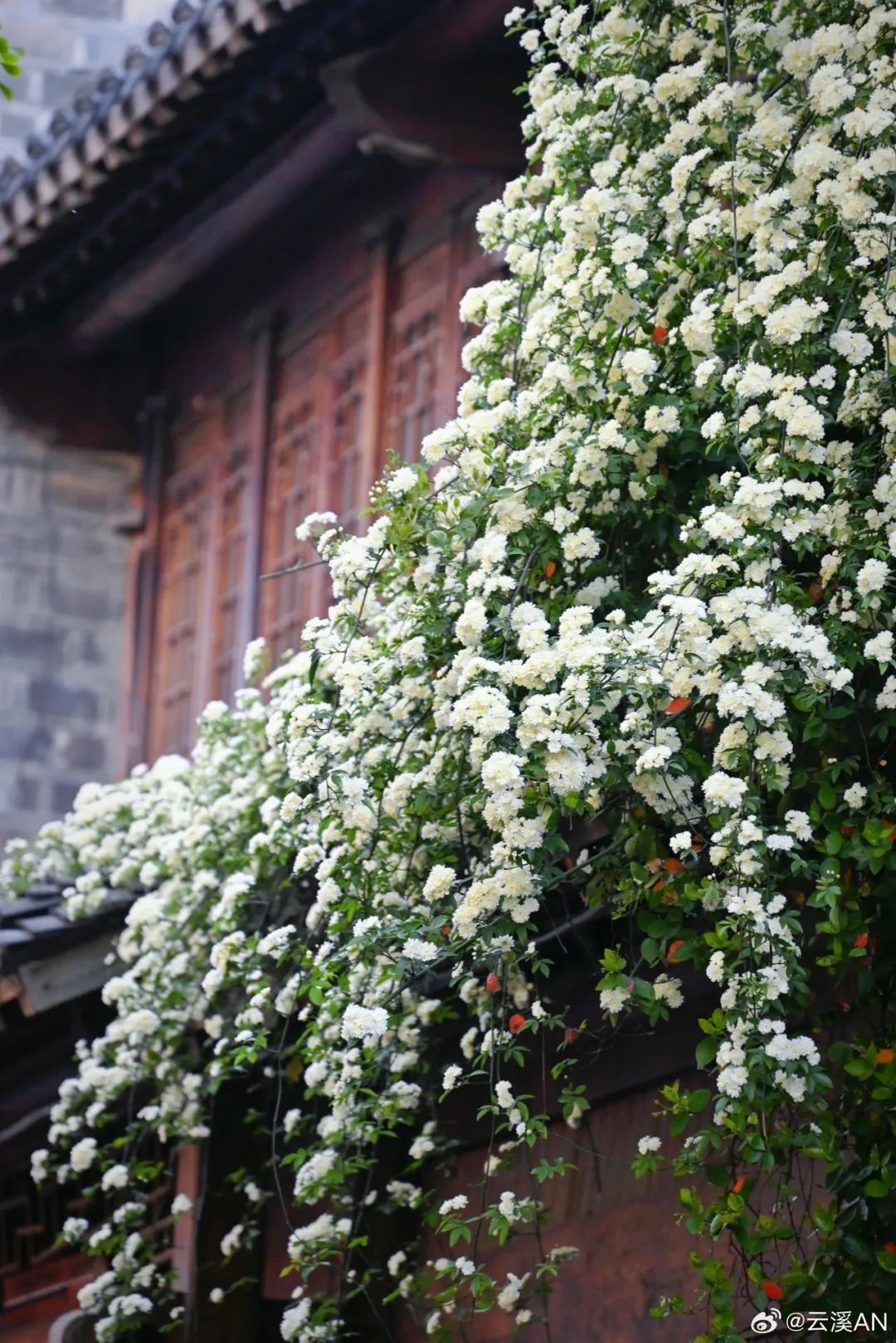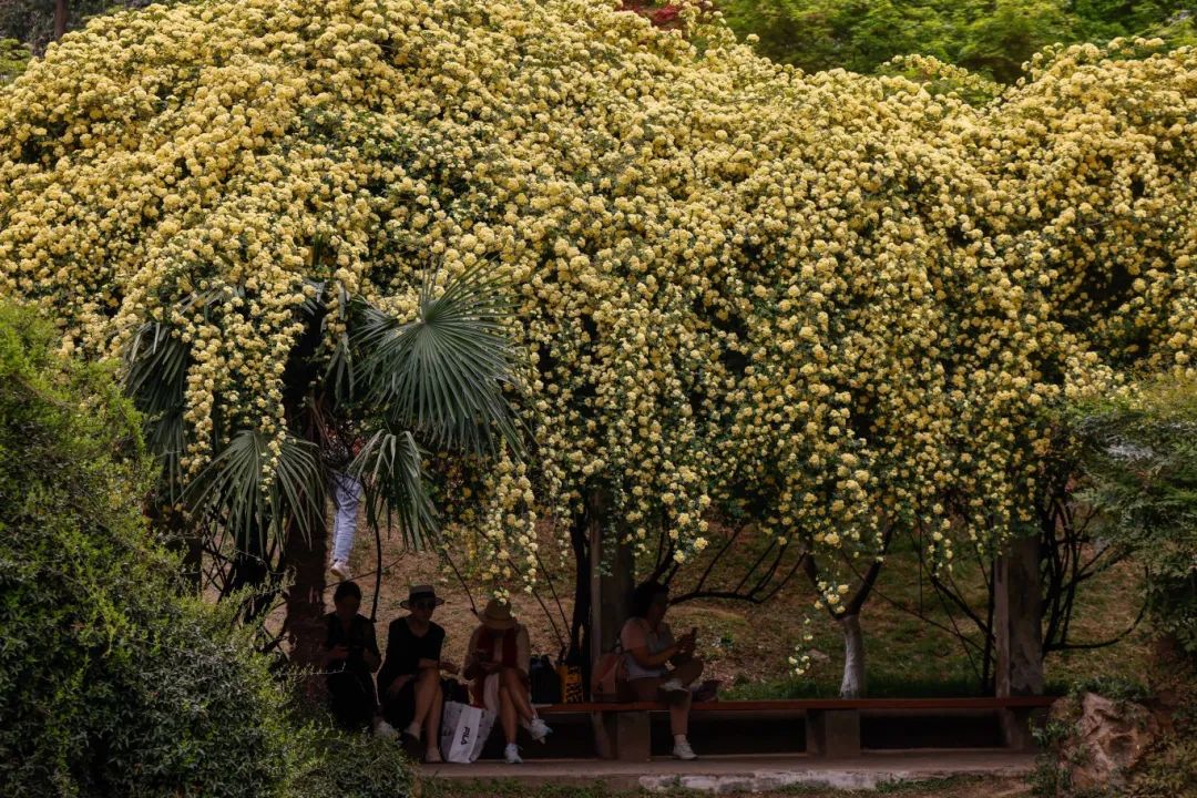 木香花瀑从墙头倾泻而下