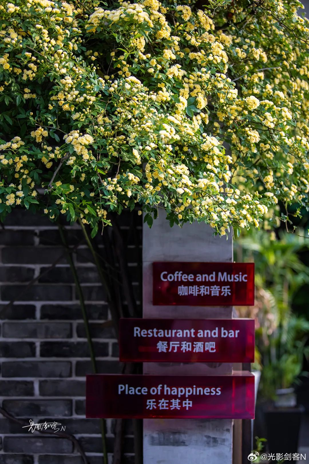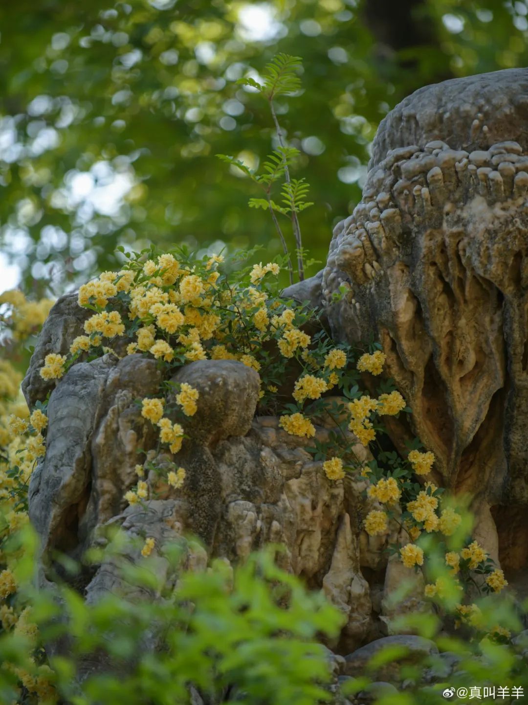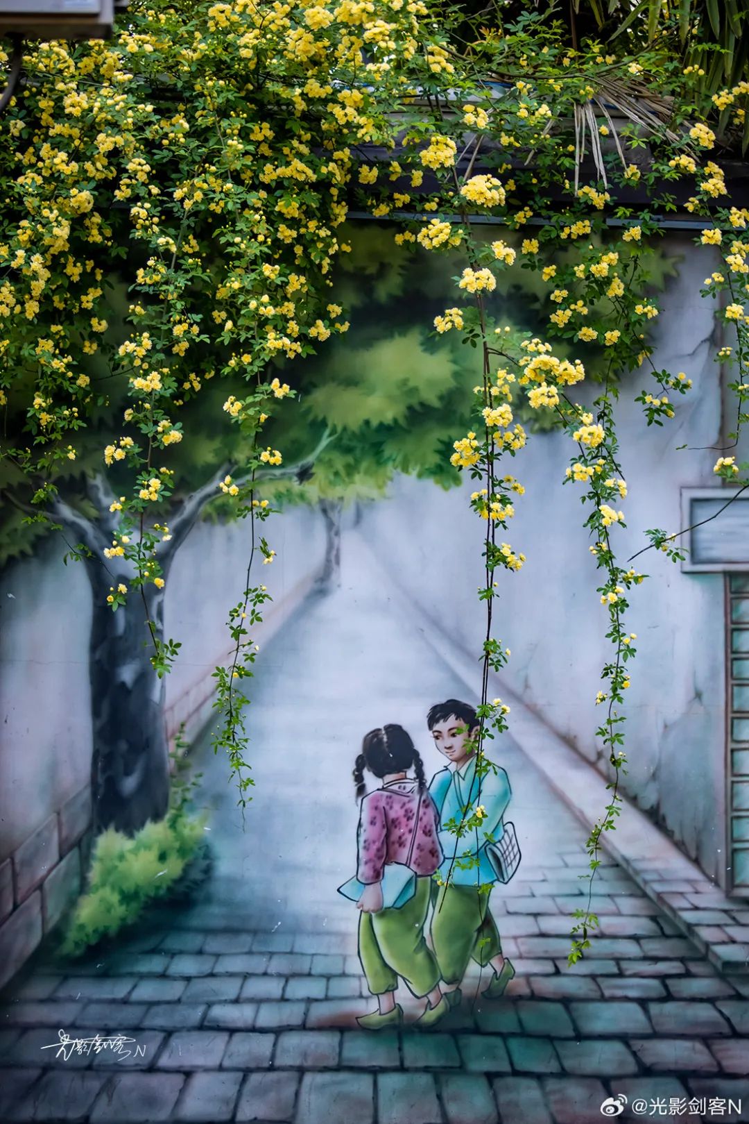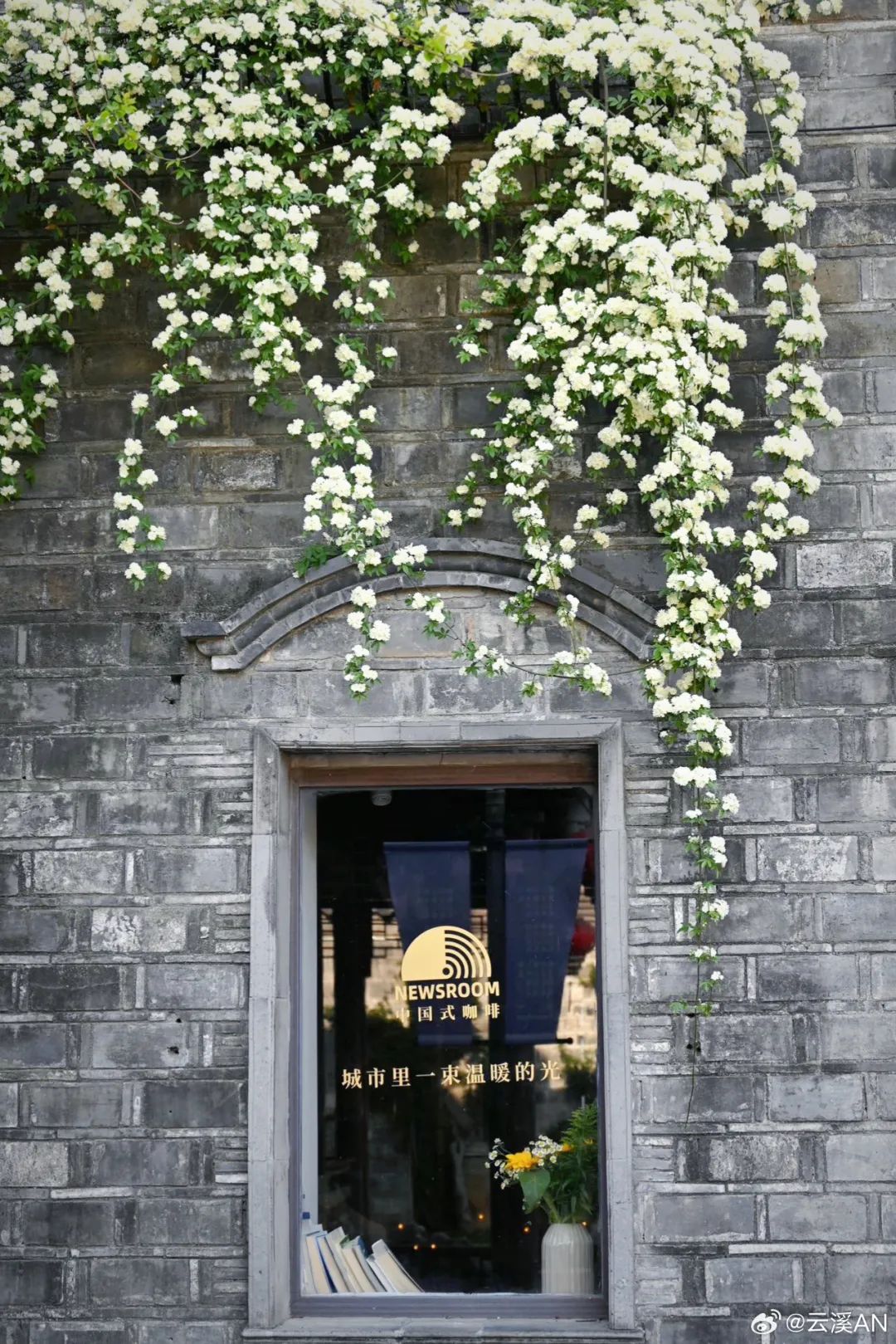 木香花瀑从墙头倾泻而下