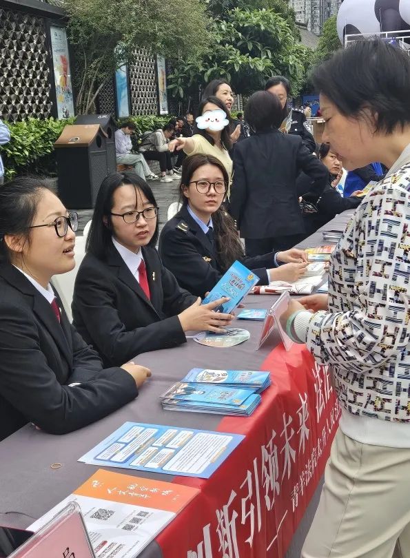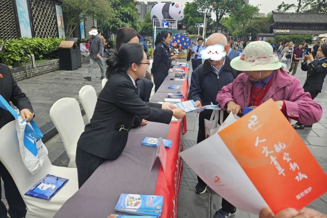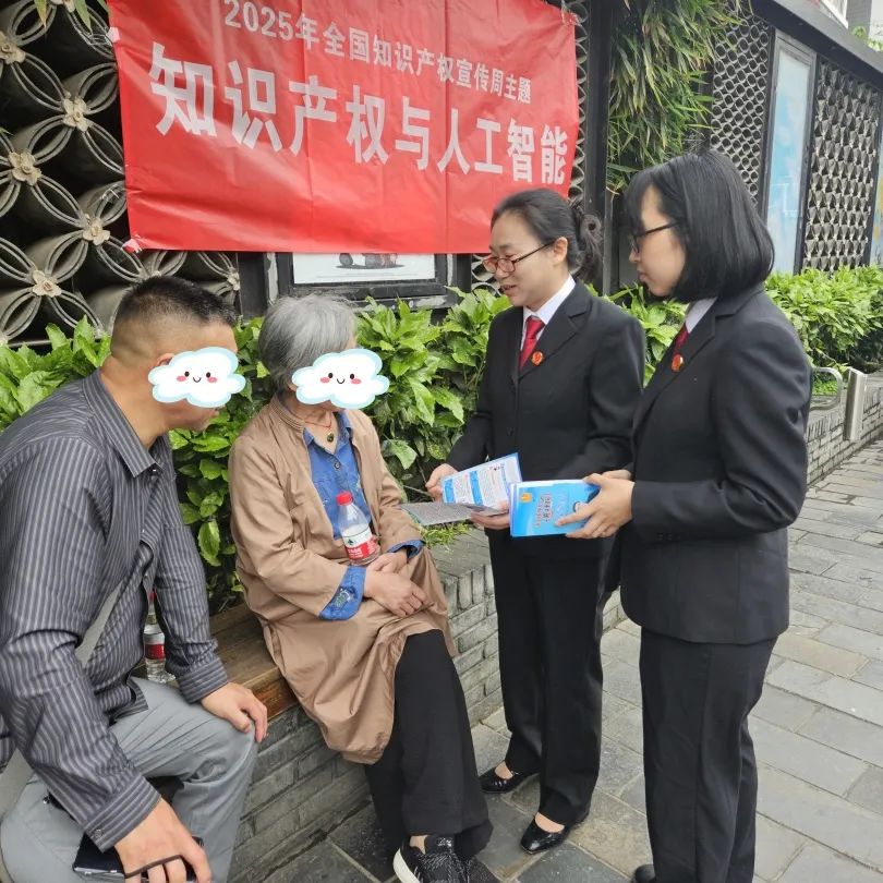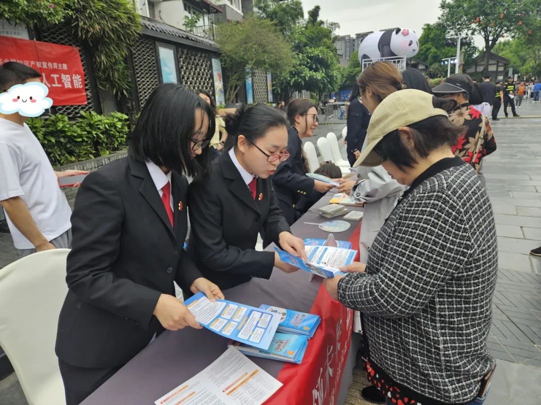 为进一步加强知识产权保护力度,提高群众对知识产权的保护意识,4月24日,青羊区法院、检察院、公安分局、市场监管局、税务局、财政局、版权局等7家单位,走进宽窄巷子联合开展“知识产权与人工智能”主题法治宣传活动。太升人民法庭的干警向来往群众讲解宣传著作权、商标、专利、地理标志等知识产权相关法律法规知识。