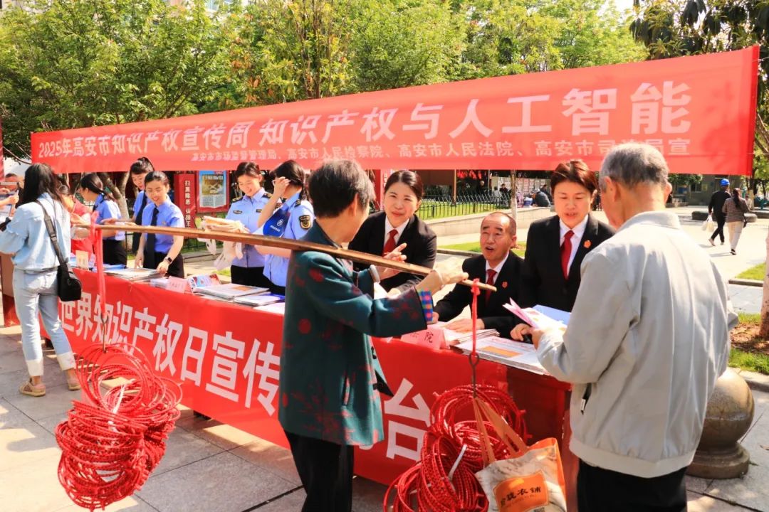 在第25个“世界知识产权日”来临之际,为进一步加大知识产权保护力度,优化法治化营商环境,4月25日,高安法院围绕“知识产权与人工智能”活动主题,联合市市场监督管理局、市检察院、市司法局共同举办知识产权宣传周活动,向群众普及知识产权保护法律知识,助力营造尊重创新、崇尚法治的社会氛围。