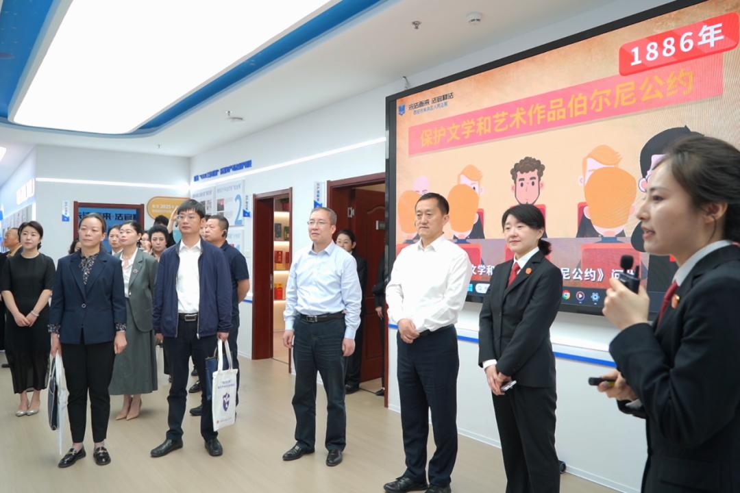 揭牌仪式后,与会代表和嘉宾一同参观了“未法知声”知识产权司法保护基地。