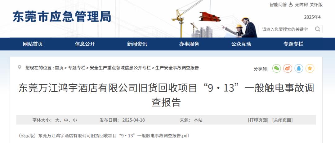 近日,东莞市应急管理局公布该起事故调查报告显示,该起事故是一起因涉事天花板存在漏电导线,使得周围各金属带电,事故相关单位对现场安全生产工作统一协调管理不到位而引发的生产安全责任事故。