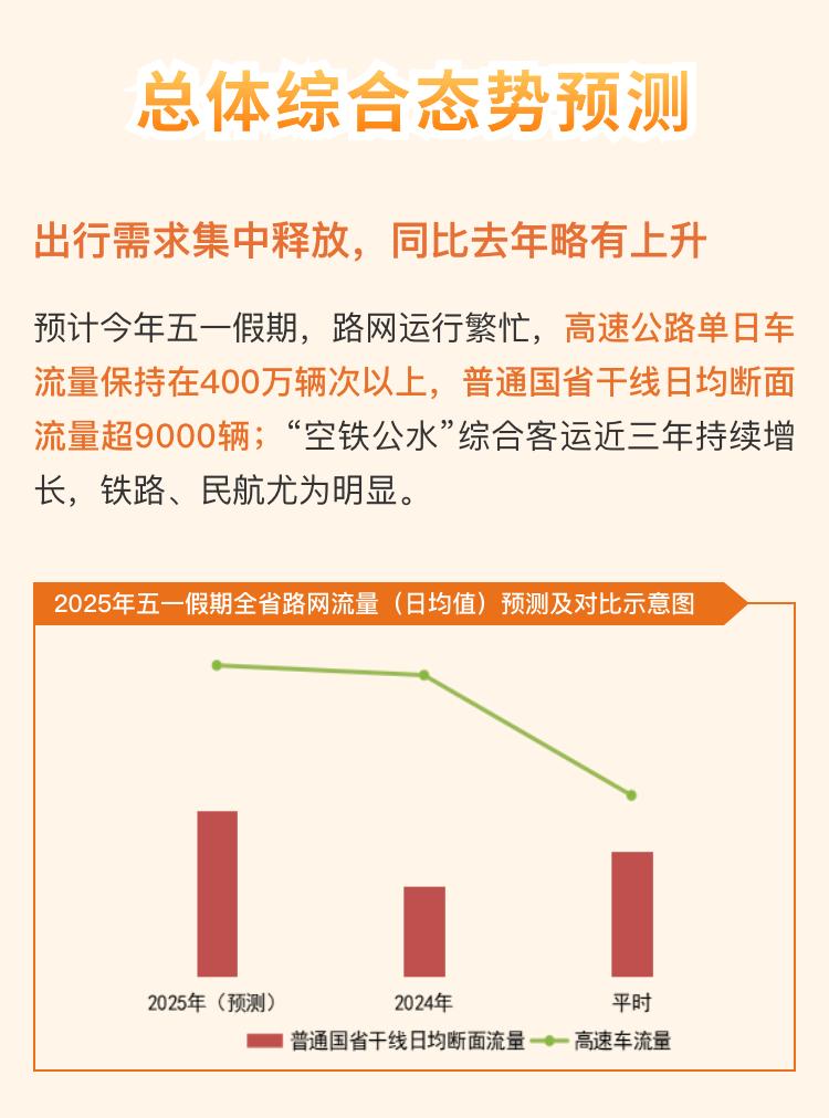 交通运输部预计,五一假期,高速公路总体保持高位运行态势:
