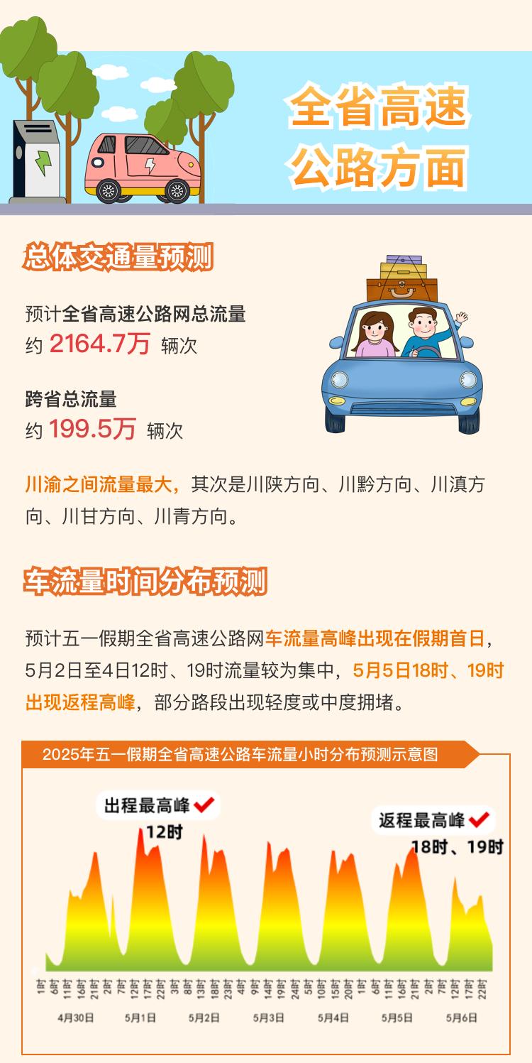 假期首日,跨省中长途出行集中,10时-12时将出现出城拥堵高峰;