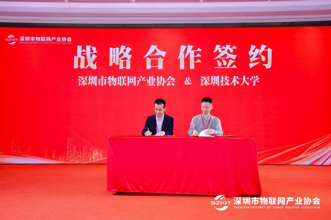会上,深圳市物联网产业协会执行会长杨伟奇与深圳技术大学数据与互联网学院副院长许强华签署战略合作协议,开启产学研深度融合新篇章,促进物联网产业技术创新与生态构建。
