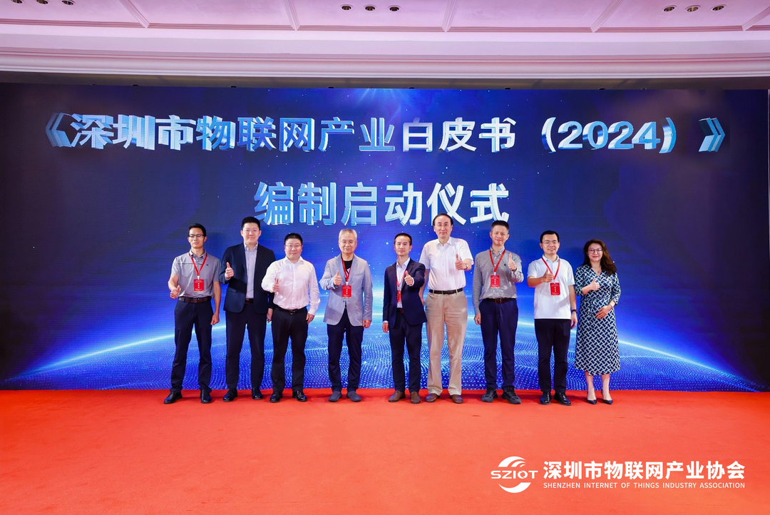 大会期间,中国技术经济学会名誉理事长、监事长李平,深圳市工商业联合会会员部部长金曦,深圳市物联网产业协会执行会长杨伟奇,清华大学教授、深圳市物联网产业协会首席专家王兴军,深圳技术大学大数据与互联网学院校企合作副院长许强华,中国信息通信研究院工业互联网与物联网研究所主任池程,广东智慧广电物联网科技有限公司市场部总经理王斯荟,深圳市铨顺宏科技有限公司总经理石春磊,深圳市讯鹏科技有限公司总经理瞿乐一起上台启动《深圳市物联网产业白皮书(2024)》编制启动仪式,标志着协会在推动产业发展方面又迈出了坚实的一步。