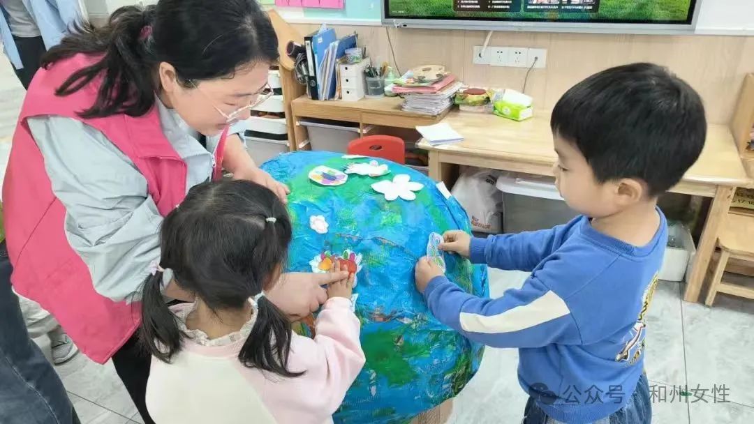 当“垃圾”清理后,地球模型上的“伤痕”,让孩子们深刻认识到环境污染对地球造成的伤害难以消除。为让地球重焕生机,孩子们发挥想象力,绘制出五彩花朵,细心地粘贴在地球模型上,使“伤痕累累”的地球逐渐被鲜花覆盖并重新绽放美丽。