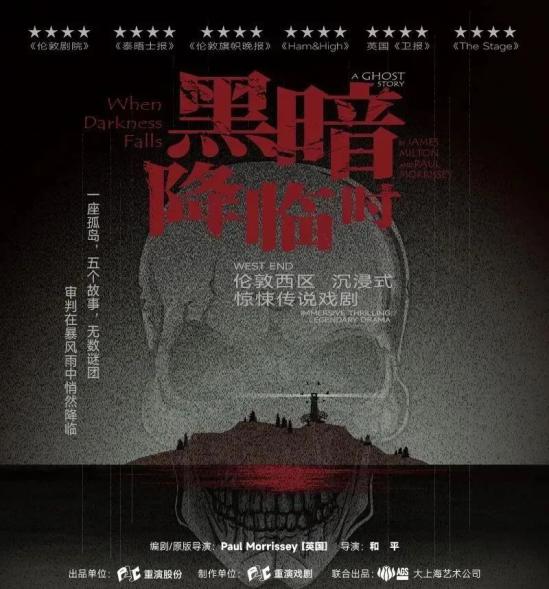 《黑暗降临时》原版曾声名大噪,收获全球多家主流媒体的高分好评。舞台以“一座孤岛”为形象核心,三面环绕的观众席,搭配诡谲灯光与惊恐声效,构建出独特的戏剧情境。