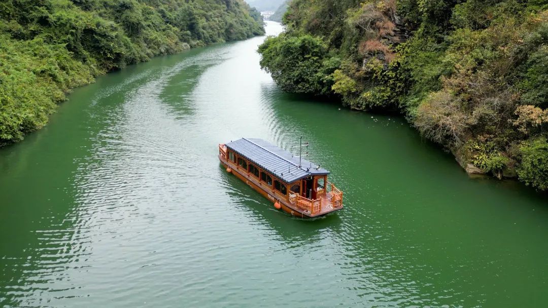 双合河像一条翠绿绸缎蜿蜒流淌穿行在两岸青山之间