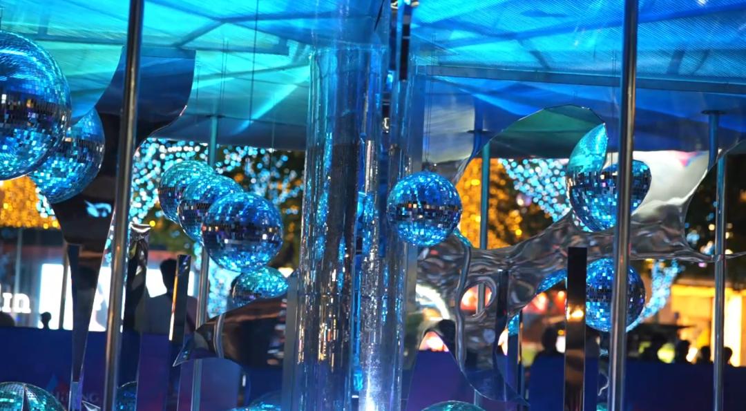 《星光泡泡机》光影装置光影泡泡机装置宛如梦幻的魔法盒,随着泡泡的飘动,光影在其中交错闪烁,行走在多巴胺泡泡空间里,让你一秒穿越多彩童年,轻松产出夏日氛围感神图。