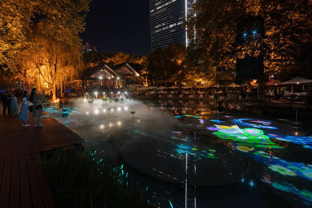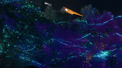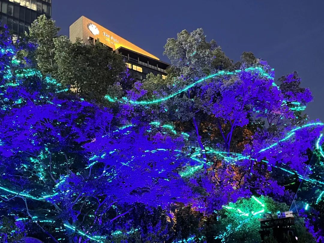 《繁星入梦》沉浸光影森林秀走进静安公园,眼前光影犹如星光,与树影婆娑交织成一幅绝美的画卷。