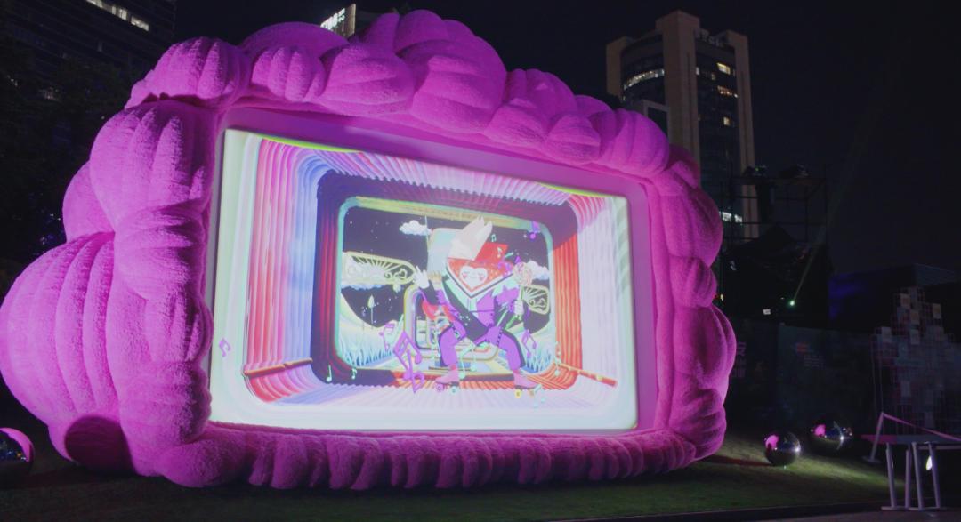 在令人沉醉的晚风中坐在巨型“毛绒电视机”前,看一场奇幻光影秀,放空思绪,进入松弛感拉满的惬意时刻。