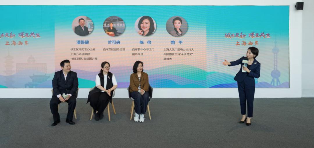 活动场地设在西岸智塔45层,这里不仅有西岸开发的沙盘,其全景玻璃幕墙外也能将西岸的景致尽收眼底。窗外,黄浦江蜿蜒流淌,江岸绿意葱茏;窗内,一场关于城市记忆与未来愿景的讨论热烈展开。