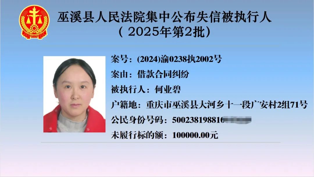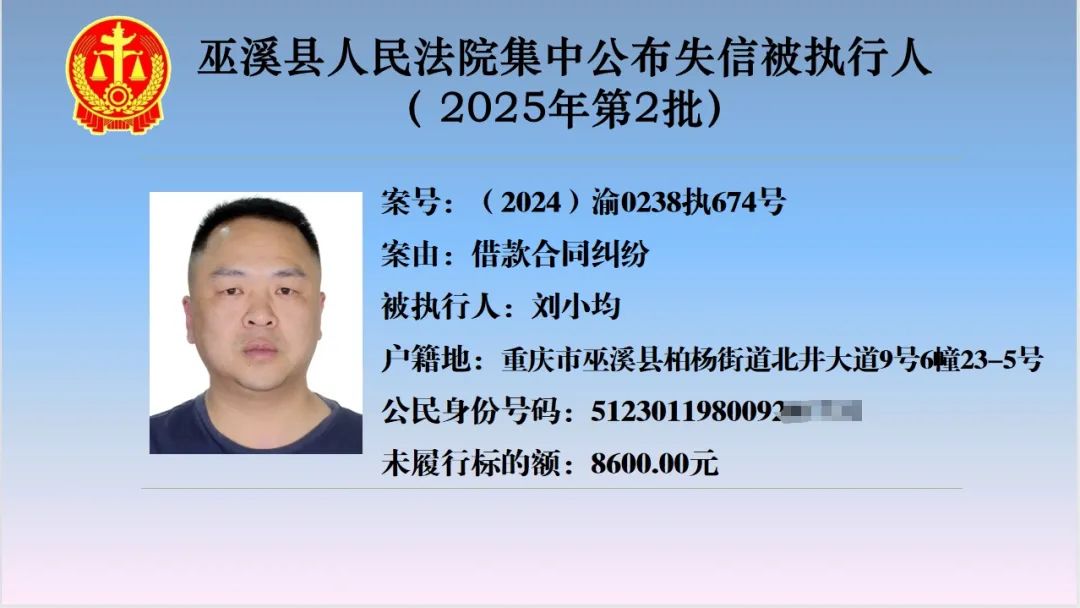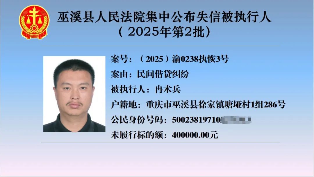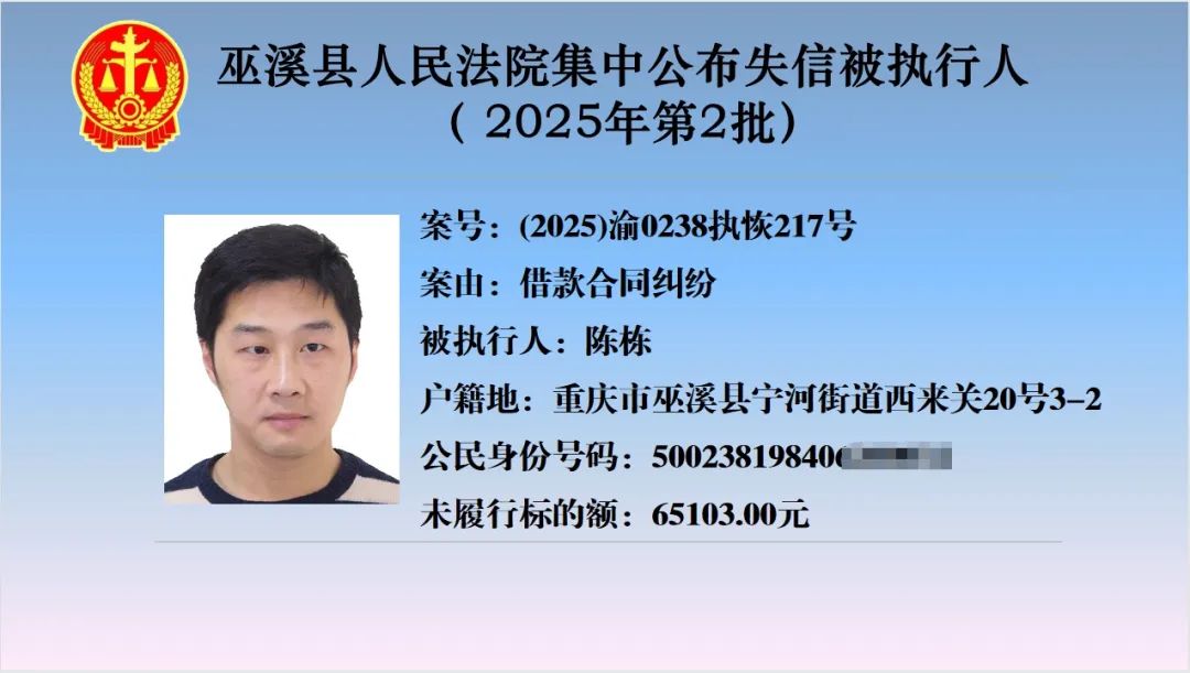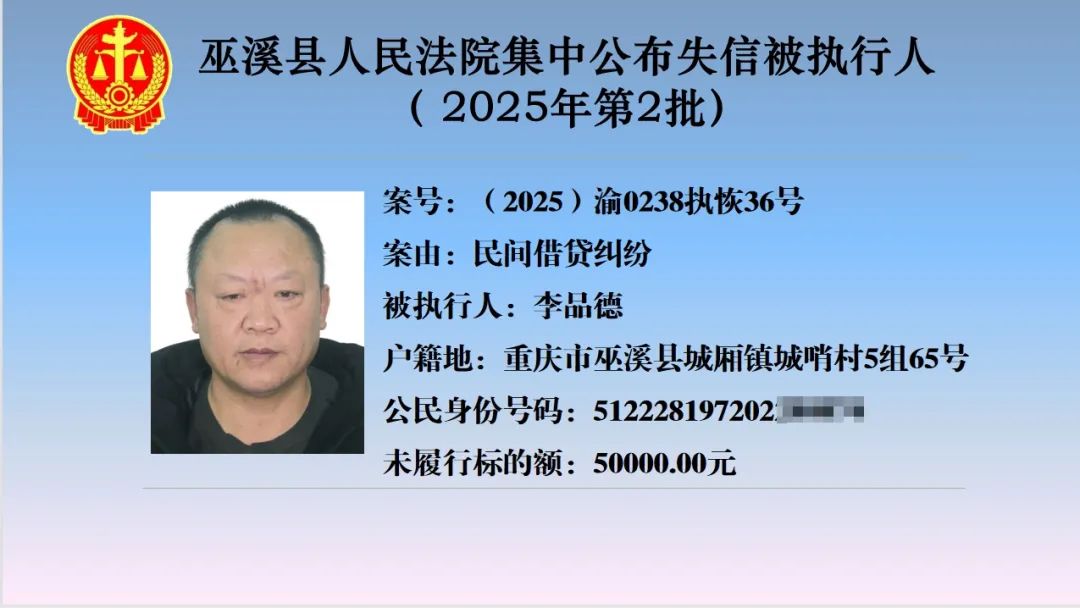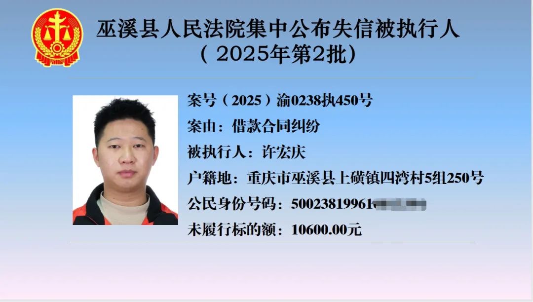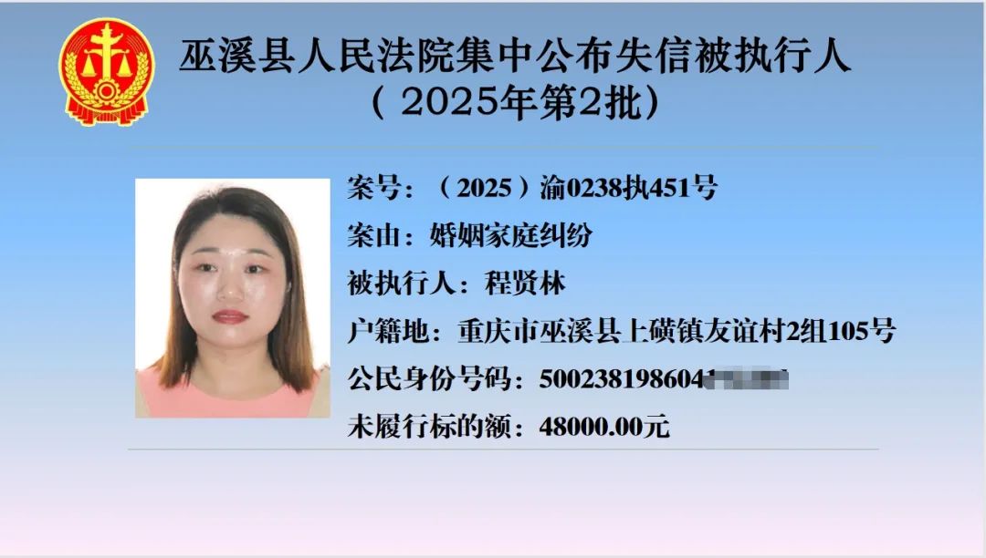 原标题:《巫溪法院 || 实名曝光!这17名被执行人失信!(2025年第二批)》