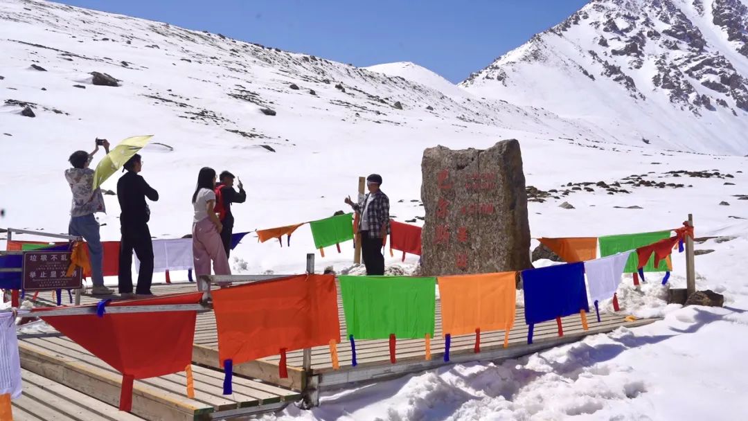 在巴尔斯雪山景区,雪山呈东西向分布,山顶终年积雪不化,在阳光照耀下闪耀着圣洁光芒。这里不仅有气势磅礴的冰川地质遗迹、湛蓝如镜的雪山天池,还有辽阔无垠的高山草原。原生态的自然风光与独特的裕固族文化相互交融, “五一”期间,尽管天气逐渐转暖,但巴尔斯雪山景区依然银装素裹,吸引了众多游客前来登山赏雪、徒步探险。