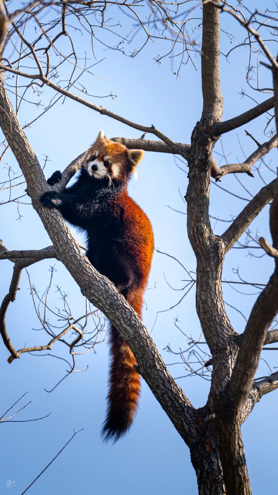 “爬树”小熊猫是少数能够头朝下爬树的动物之一,因为小熊猫的脚踝极其灵活,配合强抓握力的爪掌,便能来去自如。