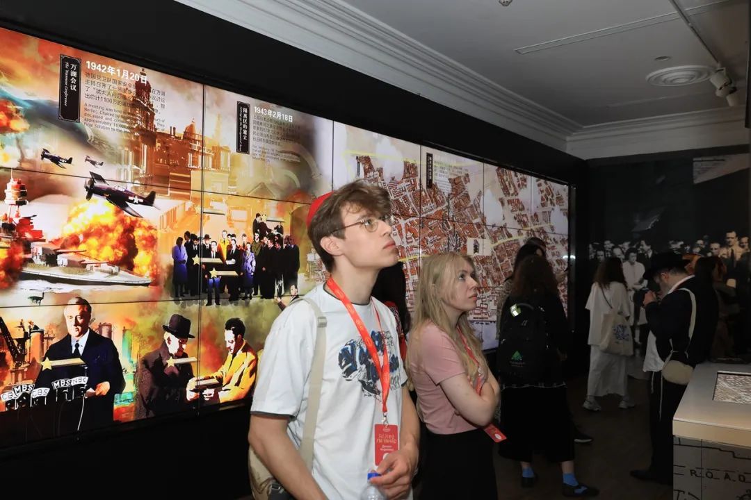 来自俄罗斯的导游Alexander Lakshin是位犹太后裔,谈起为何此次游学选择上海,他说:“非常感恩上海这座城市和人民,二战时期愿意庇护数万名犹太人避难,让他们安居生活,还在市中心建立一座纪念馆去呈现那段历史。我也注意到,这里展示了所有到访过纪念馆的游客国籍,他们遍布世界各地,希望俄罗斯同学走出课堂,更深入地学习和了解中俄两国民间友好交融的人文渊源。”