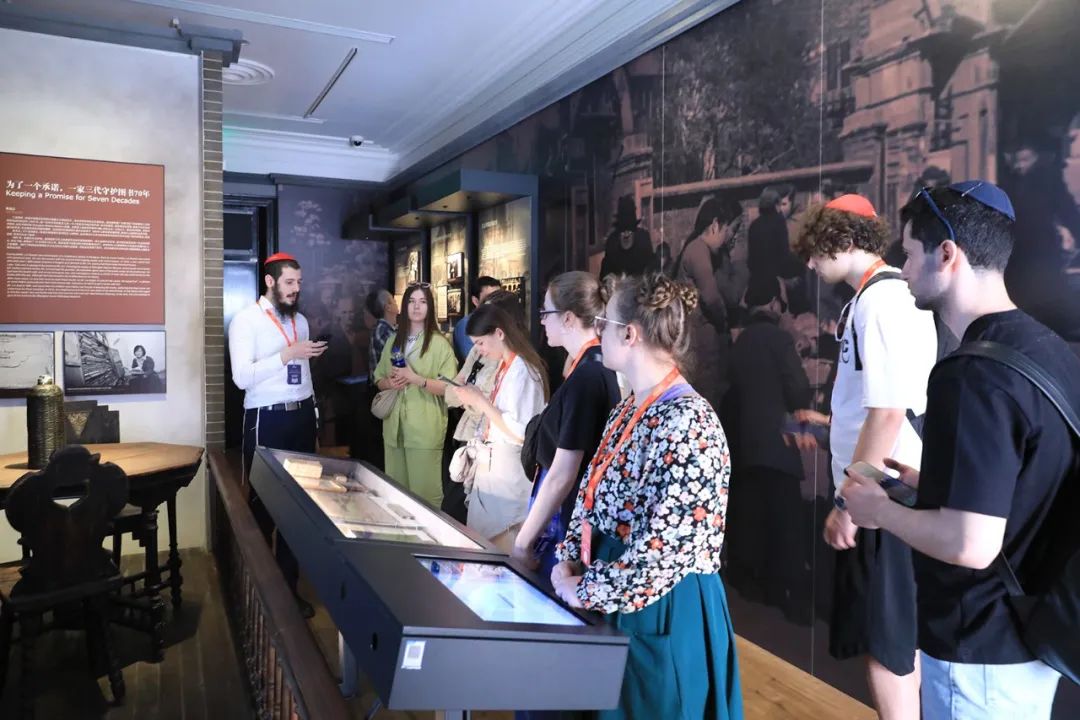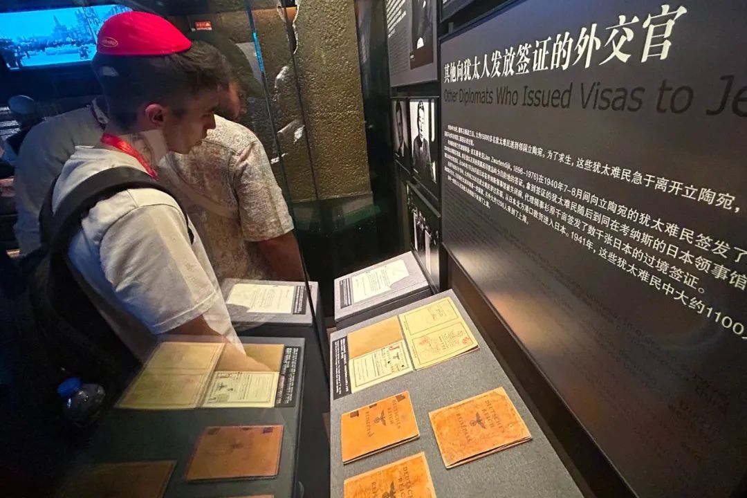 在4000平方米的展区内,青年们通过数字交互屏观看了犹太难民生活场景复原影像,聆听了“口述历史”音频录制的民族迁徙故事。展品中,犹太难民的护照、婚纱等近千件实物,让年轻一代直观感受祖辈的生存韧性。