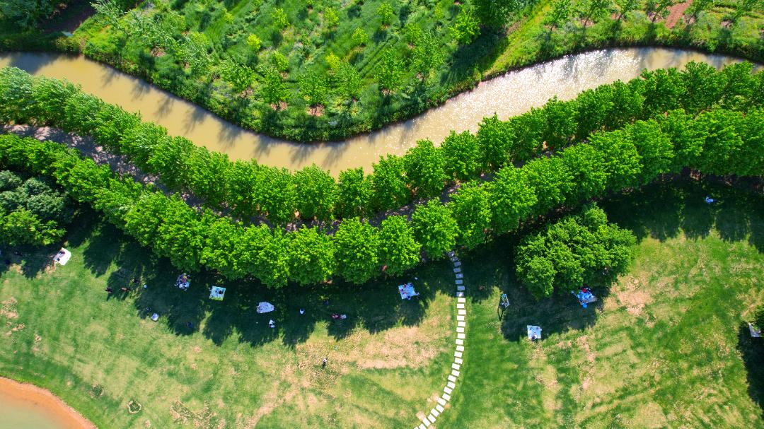 游客冯娟说:“这里空气很清新,能缓解工作压力。‘五一’放假带孩子出来逛逛,心情特别好。”
