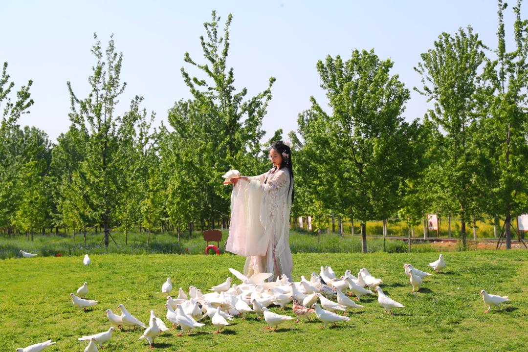 市民石蒙说:“这里环境很舒适,我们特意穿汉服来打卡,很适合一家人来玩。”