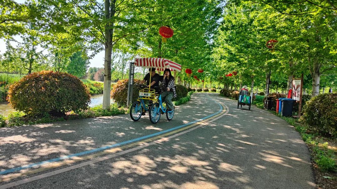大运河红枫森林景区内,旖旎风光与精彩活动相映成趣。“五一”假期,市民或携家带口,或约上好友,漫步红枫森林,在森林氧吧中沉浸式感受惬意。林荫漫道、绿草如茵,处处都是拍照打卡的绝佳地点。