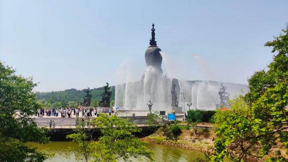 “五一”期间,喷泉分时段开放,让游客一饱眼福,欣赏“九龙灌浴”的精彩瞬间。