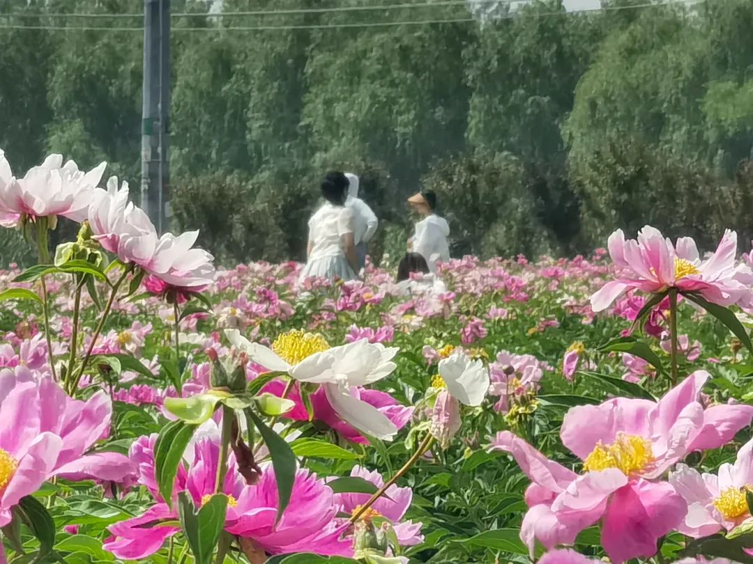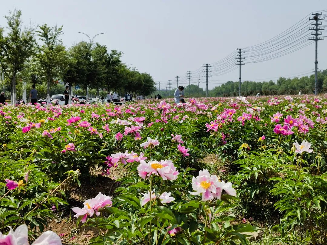 眼下,中山北路3万平方米芍药花海迎来盛花期,粉色、白色花朵争奇斗艳,形成花的海洋,成为本地及返乡人士的热门打卡点。