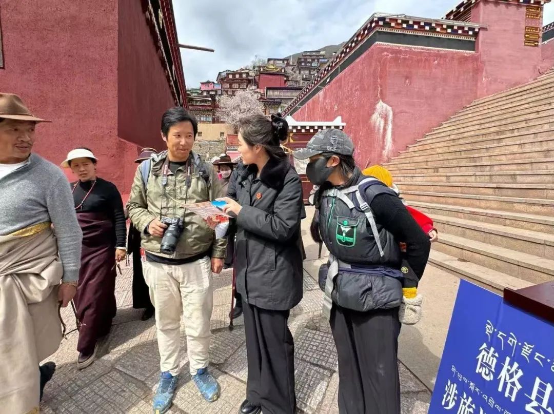 “旅游途中有哪些注意事项?”“发生旅游纠纷该如何维权?”……德格法院护航文旅法治服务点实现“多点开花”,在印经院、康巴文都等多个景点创新开展“沉浸式普法+法治护航文旅”系列活动,推动司法与文旅深度融合,为节日旅游注入法治活力。