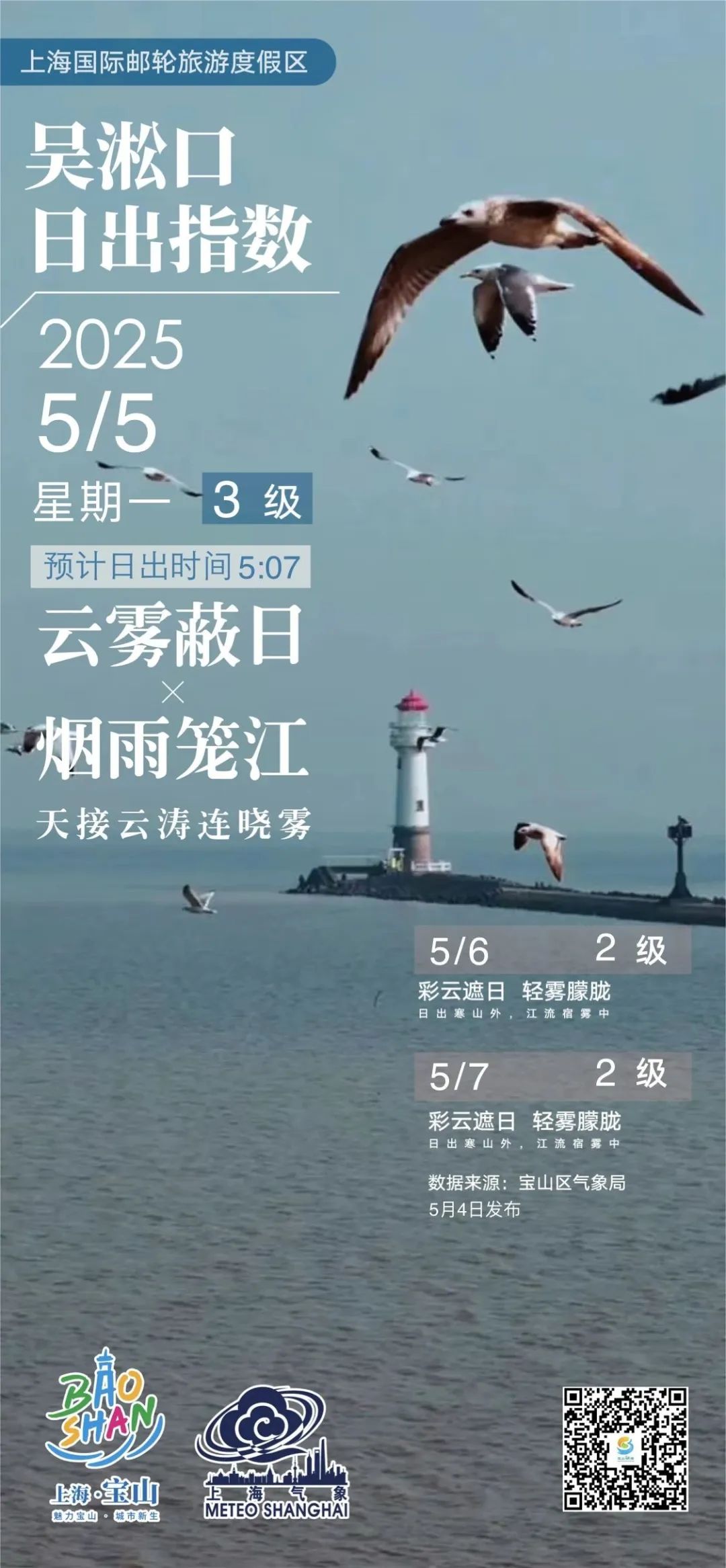原标题:《【吴淞口日出指数】5月5日3级 云雾蔽日×烟雨笼江》