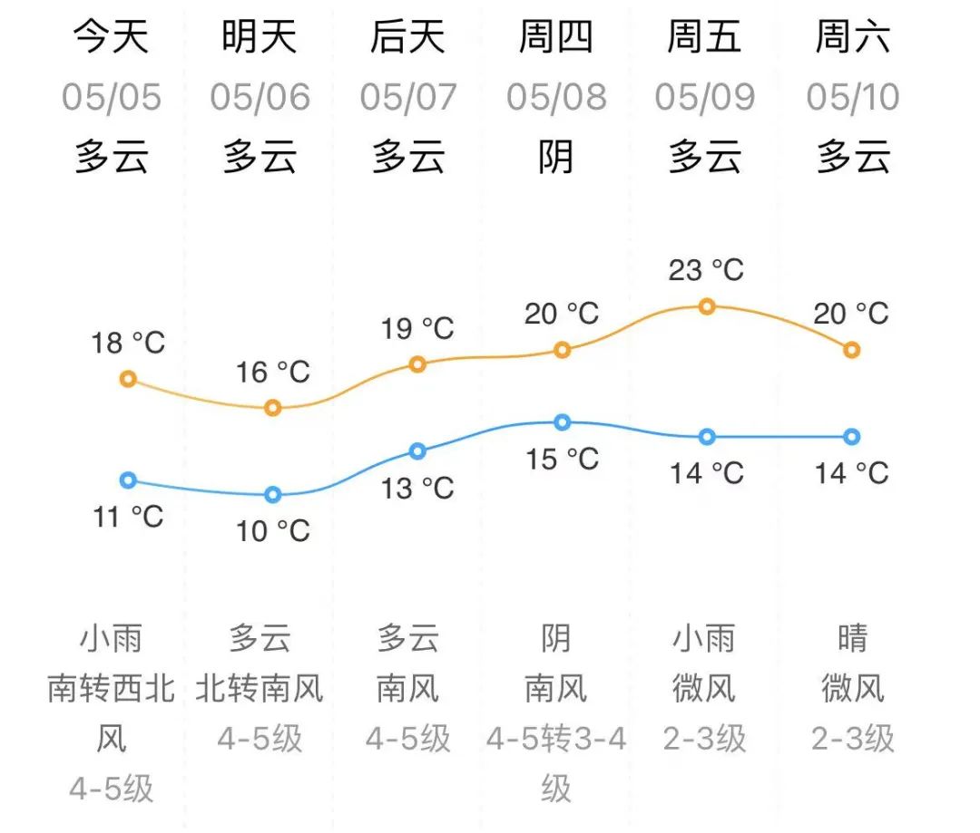 今天白天到夜间,多云转阴夜间有雷雨或阵雨,南风4~5级阵风7级夜间转东北风4~5级,18℃~11℃;