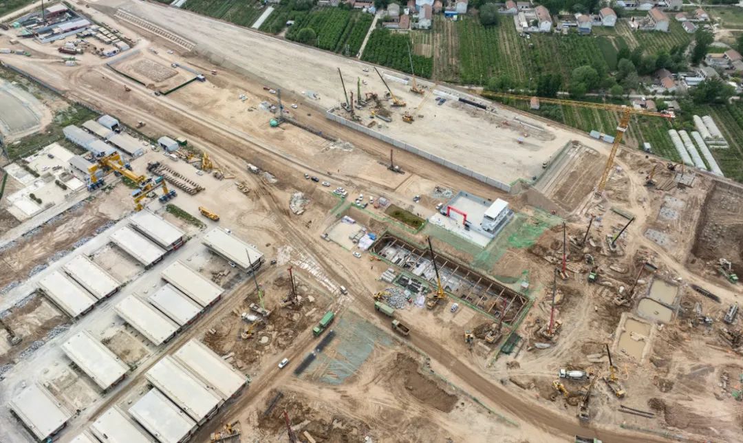 淮北西站的施工现场目前塔吊与起重机林立