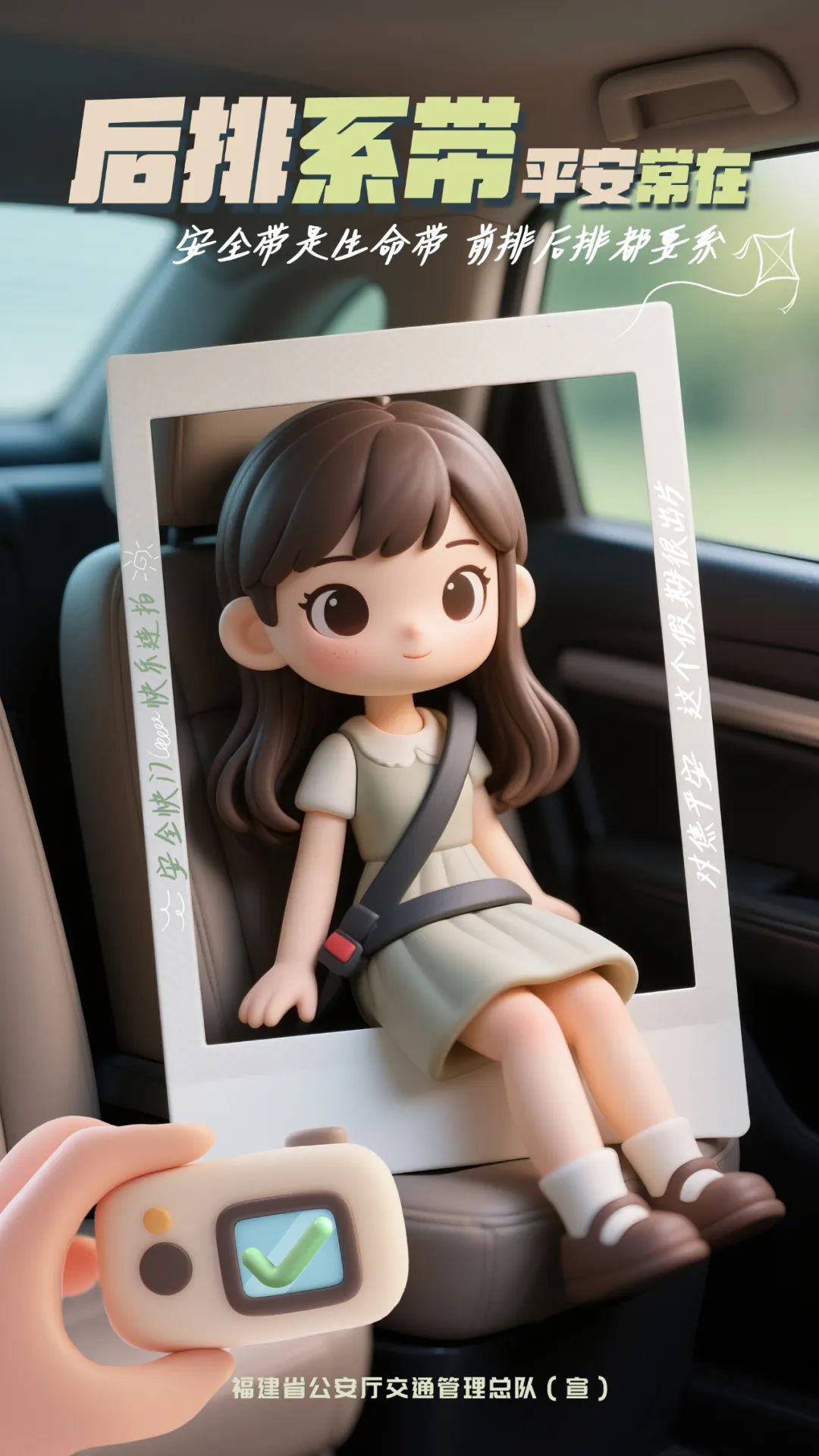 安全带前排后排都要系驾乘汽车出行请系好安全带。驾车带儿童出行时,请为儿童选用适合其年龄的儿童安全座椅,避免怀抱儿童或让儿童坐在副驾驶位置。