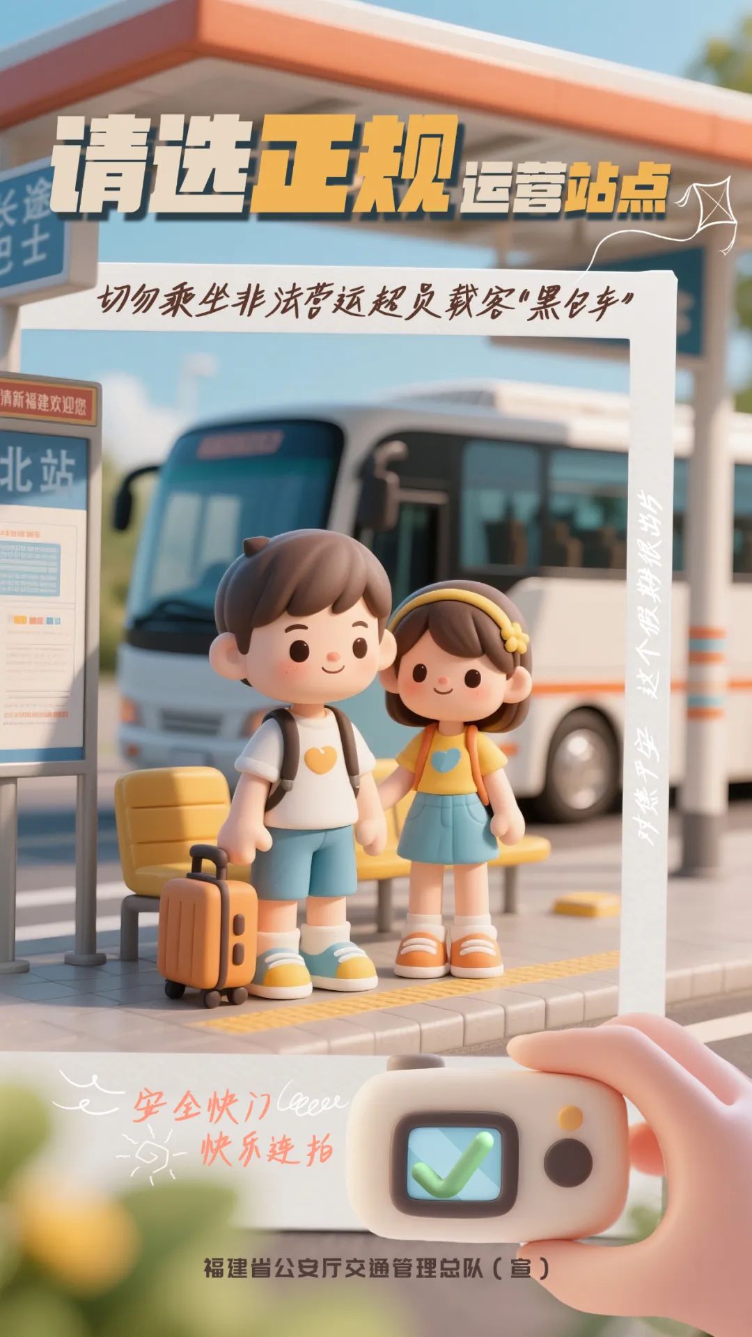 拒绝乘坐非法营运和超员车辆假期返程如果选择公路客运,请到正规客运场站乘坐具有合法运营资质的车辆,切勿在站外、公路旁拦截车辆上车。