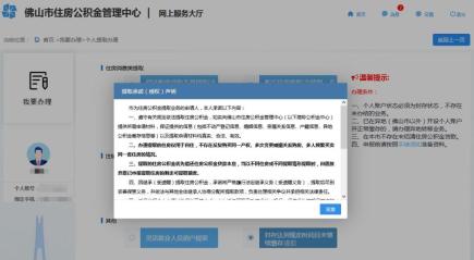 1.登录佛山市住房公积金管理中心网站(https://fsgjj.foshan.gov.cn/),在首页通过“我要办理”进入到办理模块,点击“个人提取办理”进入提取类型选择页面,点击“封存达到规定时间且未继续缴存提取”,点击下一步进入提取承诺(授权)声明对话框,仔细阅读《提取承诺(授权)声明》,点击同意后进入申报页面,如下图。(注:选择提取类型后请仔细阅读温馨提示,不满足提取条件的职工无法办理提取)。