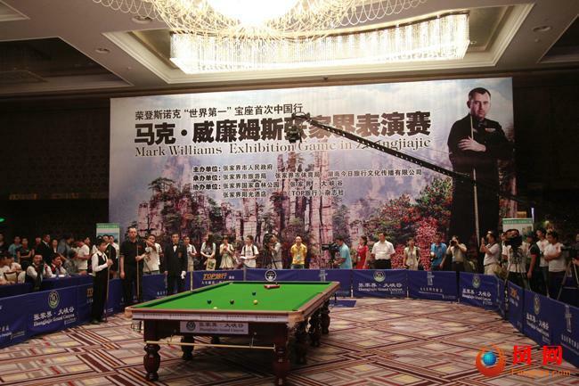 当年,为引入国际高端体育项目,推动湖南体育旅游、休闲旅游的发展,由张家界市人民政府主办,市旅游局、市体育局与今日女报/凤网承办的张家界表演赛隆重举行。现场邀请了威廉姆斯和赵心童两名“左撇子”参赛,14岁的中国左手小将赵心童,曾创造单杆最高分143分的成绩,使现场球迷兴致高昂,掌声不断。
