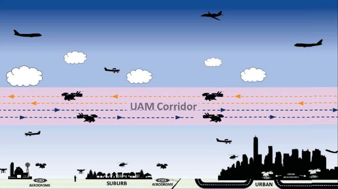 图3 美国联邦航空局(FAA)的多轨道城市空中交通(UAM)概念图