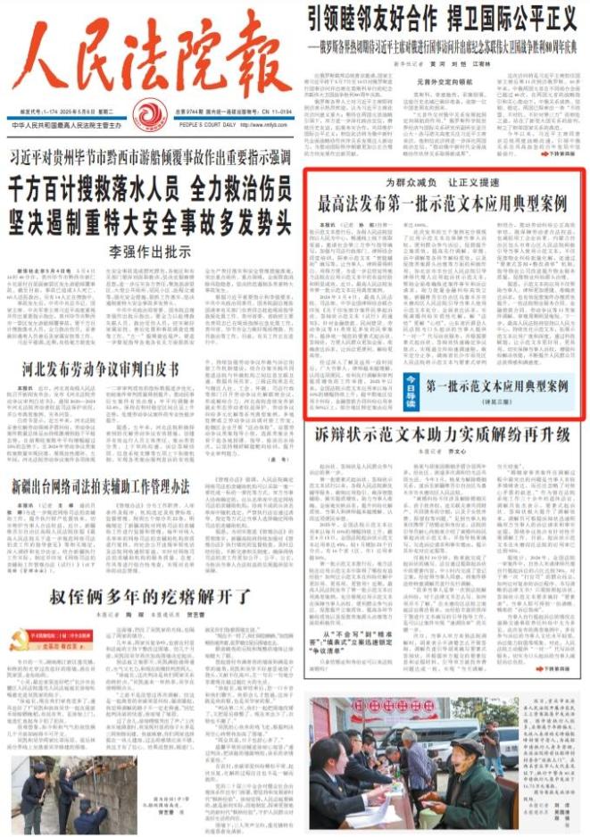 为群众减负,让正义提速!最高法发布第一批示范文本应用典型案例
