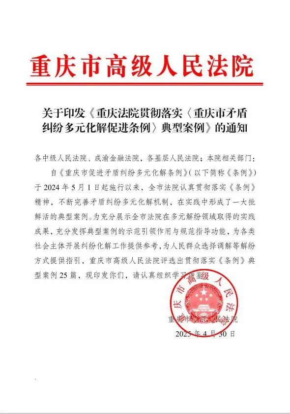 喜报!酉阳法院一案例入选《重庆法院贯彻落实〈重庆市矛盾纠纷多元化解促进条例〉典型案例》