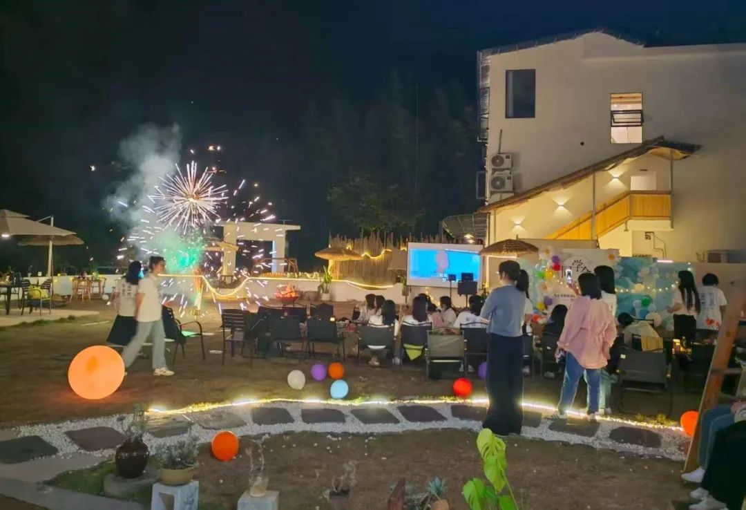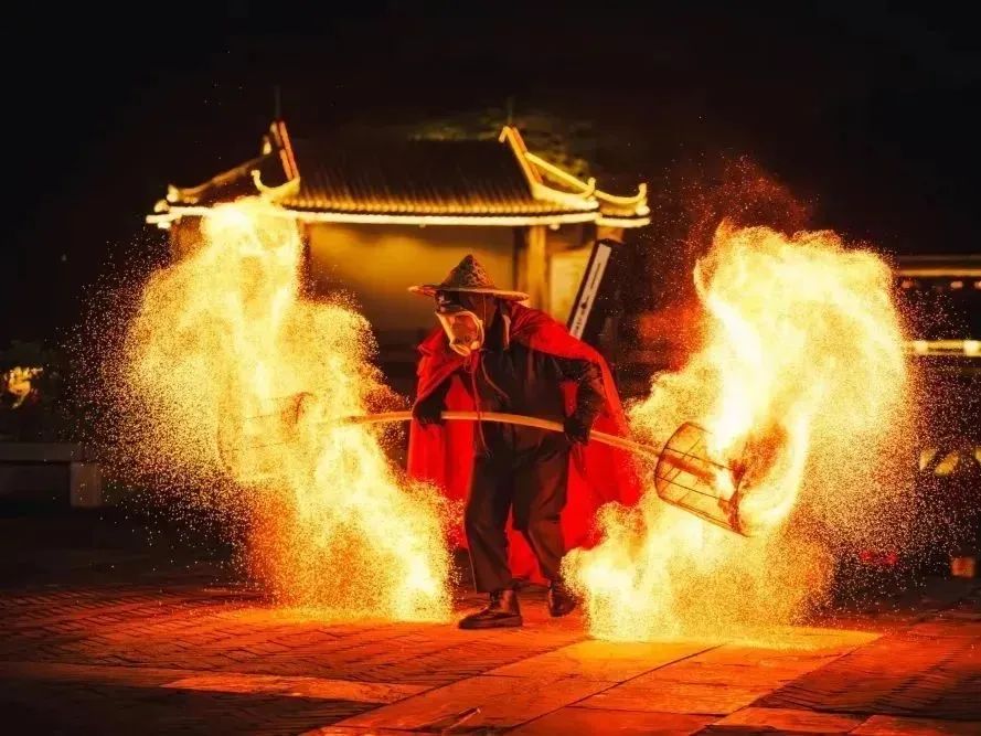 仁化宝能天街丹霞民俗小镇举办非遗火舞。过夜游客占比攀升