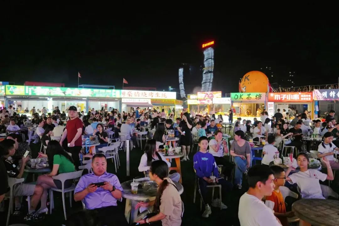 全市推出150余场文旅体赛事活动,“潮玩+文化”主题特色音乐节与市集联动成亮点,吸引年轻群体占比达60%。其中,孟洲坝夜市通过精心策划的“美食+演艺+灯光秀”组合模式,日均接待游客1.2万人次,其中5月1日单日最高达2.2万人次。韶州公园音乐美食节吸引众多年轻群体,现场汇聚摇滚、民谣等多元曲风表演,还有儿童特色表演,充满青春活力,拉动夜间消费。南雄匹克球公开赛首次在韶关地区举办,包括佛山、广州、深圳、河源、上犹等地32支队伍参赛,吸引了外地游客约2万人次。