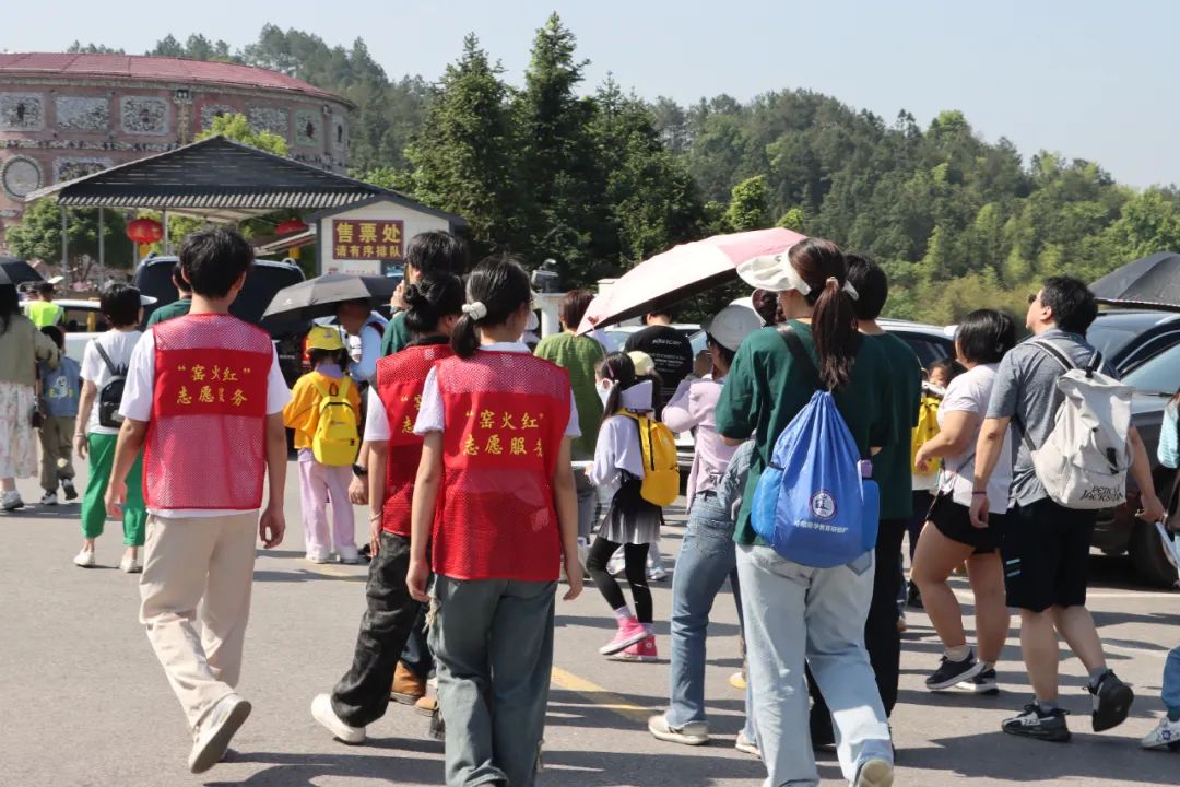 在新平瓷宫,一抹抹跃动的红色身影格外引人注目。身着红色马甲的“窑火红”志愿者们分工明确,以饱满的精神状态为每一位游客提供交通引导、志愿讲解等贴心服务。“这边可以行李寄存”“售票处在景区大门口”……一句句贴心的提醒,让初来乍到的游客们感受到了宾至如归的温暖。