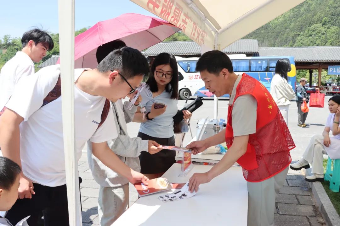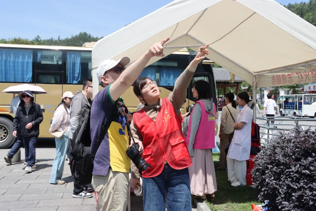 为应对客流高峰,县应对“五一”旅游高峰指挥部提前制定了周密的旅游接待方案。景区外,规划了临时停车区域,开通多趟免费接驳车循环往返,缩短游客步行距离;交警部门在重点路段增设引导标识,安排专人实时疏导,确保车流有序通行。景区内,餐饮、零售、民宿等商户统一规范经营,让游客玩得安心、消费舒心。志愿服务有温度 贴心服务暖人心