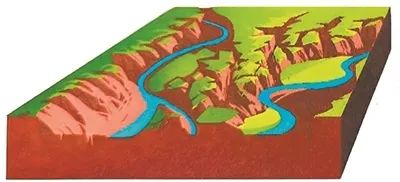 青年早期(高原峡谷型景观):红层抬升期,高原峡谷地貌组合。属地壳抬升-流水下切-巷谷、峡谷发育阶段,多呈现瀑布、跌水景观。
