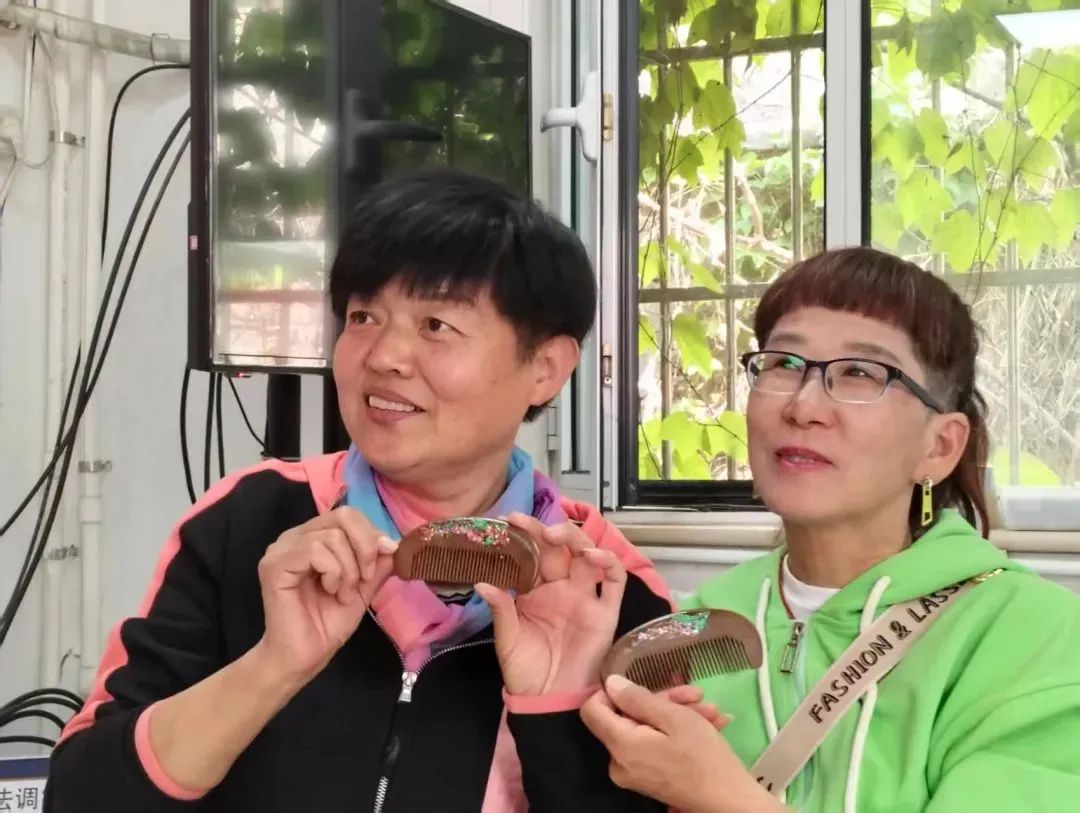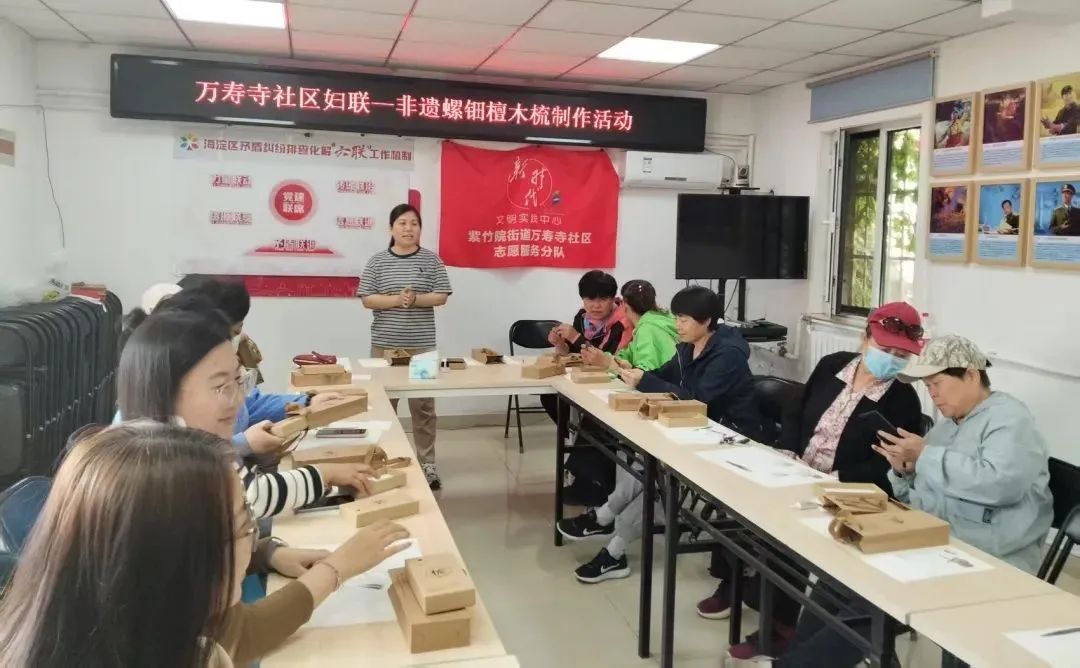 非遗螺钿檀木梳制作现场,居民们近距离接触非遗技艺,亲手打造精美的檀木梳,领略传统文化的巧妙技艺。