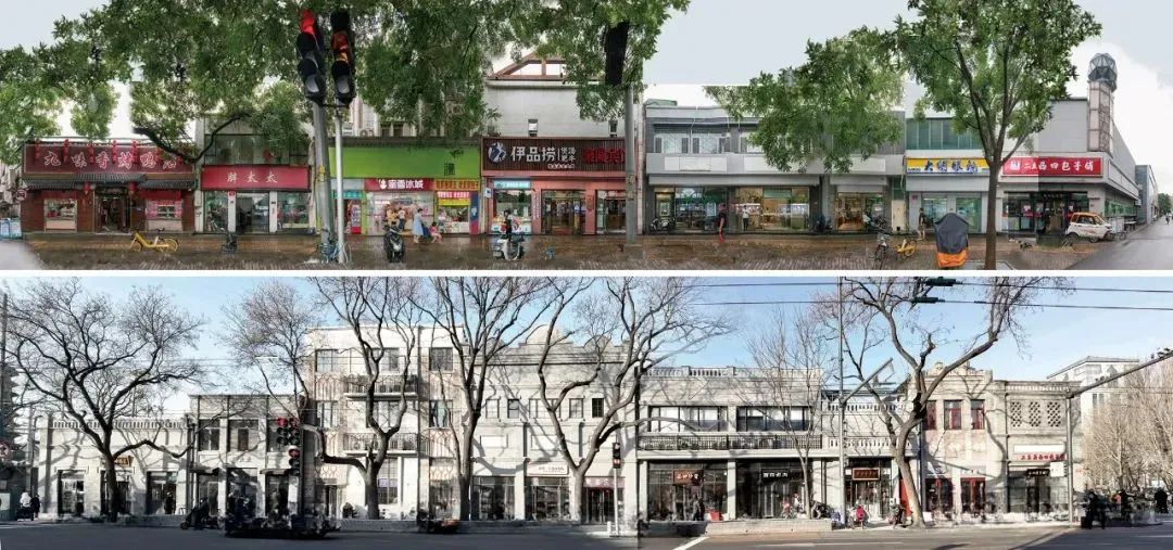 ▲ 15 西安门丁字路口建筑群改造前后对比(左滑查看完整图片)