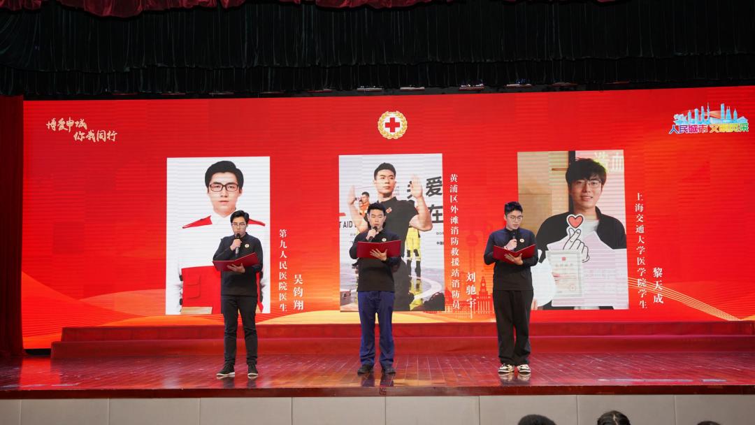 上海市红十字会党组成员、副会长兼秘书长孙群荣,黄浦区委常委、宣传部部长钟璟,副区长、区红十字会会长袁园,上海交通大学医学院党委副书记、副院长吴正一,以及黄浦区红十字会、各街道红十字会、冠名红十字医疗机构、红十字学校和红十字理事单位的代表,以及区相关委办局、爱心企业、红十字志愿服务队的代表等参加活动。记者 / 范沁毅